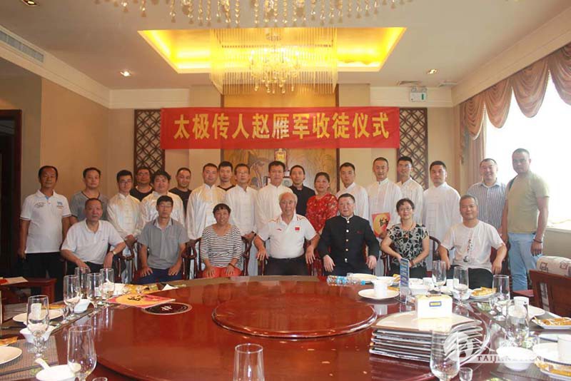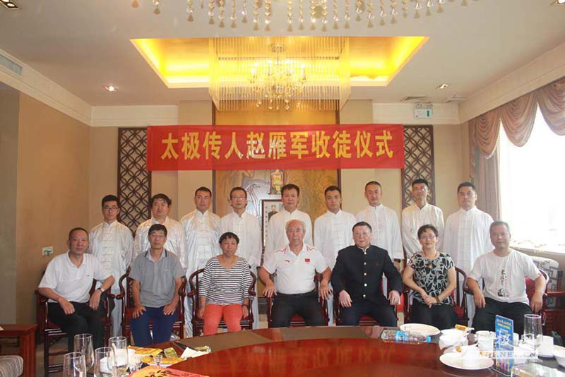(太极网报道)2017年7月29日,中国武术七段,西安市莲湖区武协副主席,西安太极拳总会副秘书长,陈金鳌太极拳学会常务副会长,陈氏太极拳第十一代传人赵雁军先生收徒仪式于西安青龙寺东门侧的宗江明珠酒店还珠厅顺利举行。本次有刘雷涛,戴杰,袁文杰,李明,乔剑,魏斌,戚翰德,郭卫东,李国瑞。等9名优秀的太极拳爱好者拜入赵雁军老师门下,正式成为太极拳传承人,为太极拳的传播和推广注入新的力量。这9位拜师的新人,分别来自西南的云南、大西北甘肃、和山东、陕西,更有从万里之外的美国赶来拜师的。 陕西唯学文化艺术公司总经理高剑平先生主持收徒仪式,窗外细雨轻洒,室内高朋满座。陈金鳌宗师之徒弟,太极拳大师李树发先生及其弟子樊超、黄德明,太极拳大师陈堂先生的大女儿陈小素,女婿郑福祥(咸阳陈堂太极拳研究会会长),陈堂大师的得意弟子,西安陈氏太极拳非物质遗产文化传承人 ,西安陈氏太极拳辅导站站长职宝贵先生,陈金鳌太极拳学会副秘书长,太极拳大师崔玉洁先生的女儿崔秀菊女士,西安市武协副主席,陈金鳌太极拳学会会长刘永强先生等武术名家,齐聚一起见证赵雁军先生喜收新徒,见证9位太极新人,进太极门,习学、体悟、传承陈金鳌小架太极拳之精妙。 刘永强主席发表了热情洋溢的讲话,鼓励新人们好好学习传统文化绝学,继承发扬光大陈金鳌太极拳小架。并且给各位新人示范了太极推手要诀,大家深表欢迎感恩。赵雁军先生也发表谈话,期盼共同努力,把祖国优秀文化,民族瑰宝继承发扬,造福社会。 注:2017年3月初,赵雁军先生在同样的地方第一次收徒10人。 责任编辑:太极网小洁 |