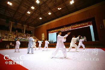 中国驻韩国大使馆文化参赞兼文化中心主任车兆和、韩中文化友好协会会长曲欢、印度尼西亚青年体育部部长苏帕尔曼、国际东岳太极拳协会韩国分会会长门阚红等出席了开幕式。车兆和参赞为大会作了热情洋溢的致辞,他说,“交流大会在展示中国传统文化的同时,也向来自世界各国的选手宣传韩国的旅游文化,增进他们与韩国同行之间的理解,加深彼此的友谊。希望以此作为宣传中韩两国文化的良好契机,为进一步扩大中韩文化交流与合作发挥更大的作用,为推动中韩及世界人民的友好做出积极的贡献。”李连杰的恩师吴彬教授亲自担任本次交流大会顾问。他在致辞中说,他曾经来韩国参加过奥运会、亚运会及多次体育赛事,但是出席这样民间举办的国际健康太极拳交流大会尚属首次,希望大会越办规模越大,越办越成功。曲欢会长介绍说,除了每两年举办一次大会以外,组委会正筹划明年举办国际健康长寿太极拳论坛,她还表示将为中国传统武术在世界上进一步发扬光大而竭尽全力。 大会开幕式上,中国、印度尼西亚、日本和韩国的选手分别表演了精彩的武术节目,赢得观众阵阵喝彩;比赛现场气氛紧张热烈,近400位肤色语言不同的太极拳高手进行比赛。他们年龄最大的83岁,最小的只有8岁,分老、中、青、少等四个年龄组分别展开了8式太极拳、16式太极剑、东岳太极拳等十余个项目的团体和个人赛,最终决出了各年龄组中的佼佼者。由于吴彬教练亲自担任大赛的总顾问,更保证了大赛的专业性、严谨性和规范性。 |