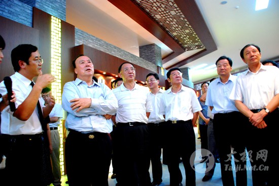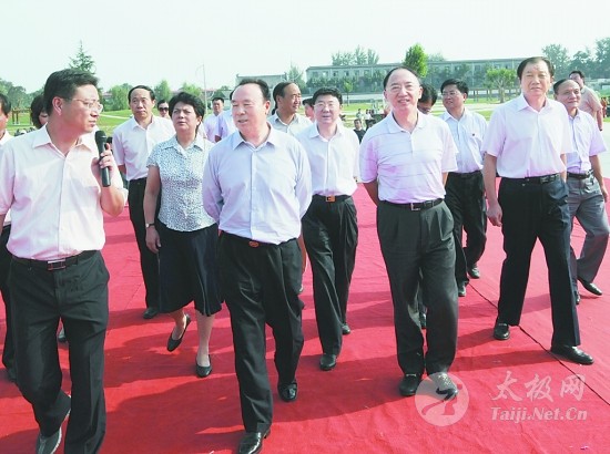 | 昨日下午,出席“一赛一节”开幕式的全国政协副主席白立忱(前左二)、国家体育总局局长刘鹏(前左三)、国家体育总局武术运动管理中心主任高小军在省、市、县领导孔玉芳、邓永俭、路国贤、孙立坤、郭国明、王长松、田跃曾、牛越丽、魏曰高、秦迎军等的陪同下,考察太极拳发源地——温县赵堡镇陈家沟。 |