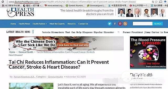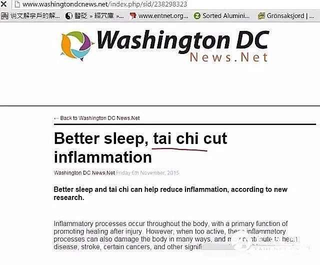 2015年11月6日美国华盛顿特区新闻的文章。 太极减少炎症,有利于健康。