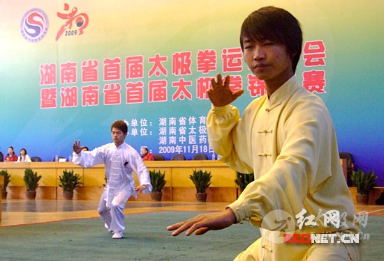 | 11月19日,为纪念全国首个“全民健身日”,检阅湖南省太极拳运动水平,选拔优秀运动员参加国际国内比赛,湖南省首届太极拳运动大会暨湖南省首届太极拳锦标赛今日在湖南中医药大学体育馆开幕,1000多名省内太极拳运动爱好者齐聚一堂,进行太极拳比赛和理论探讨。湖南省十届人大常委会副主任颜永盛等出席开幕式。 |