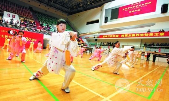 庆祝大会上,来自全市各地的20多个太极拳表演队在市体育中心侨乡体育馆内表演了四式太极拳、南少林拳械、杨式太极刀等精彩节目。 |