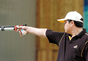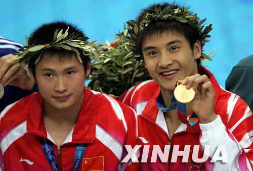 “六朝元老”王义夫连续两次痛失奥运金牌后,终于梦圆雅典。他在男子10米气手枪决赛中一波三折,在最后一枪以0·2环险胜俄罗斯的“西伯利亚熊”涅斯特鲁耶夫。 这一少一老的出色发挥,让“保二争三”的中国射击队一大早就“完成任务”。 不过,中国军团的好戏远未结束。在女子三米板双人跳水赛中,郭晶晶和吴敏霞以近乎完美的表现摘得金牌。田亮和杨景辉在随后的男子跳台双人赛中,以更为完美的表现征服全场,以12·36分的优势夺冠,为中国跳水“梦之队”创造了梦幻般的开局。