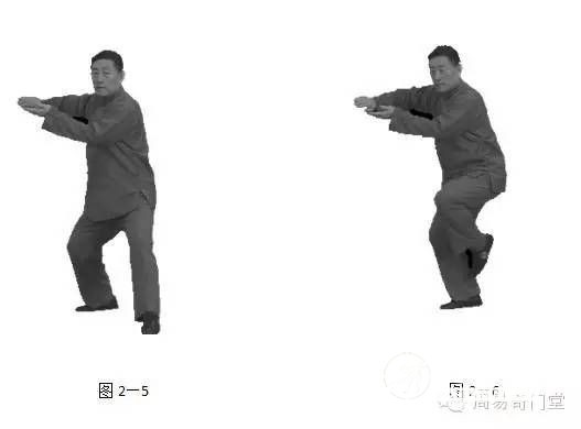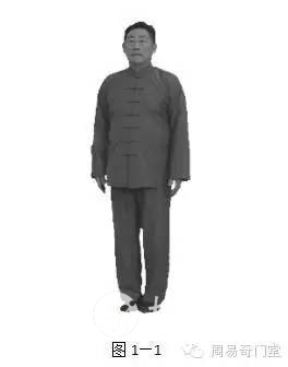 动作四:然后两手缓缓抬起,与肩同高,与肩同宽。(图1—6) 动作五:身体落,双手随着身体下落到腹前。(图1—7) 要点:身体立而不挺,顶劲领起,全身放松,呼吸自然;松肩坠肘,含胸塌腰,屈膝松胯,心气下降,气沉丹田。 第二式 金刚捣碓