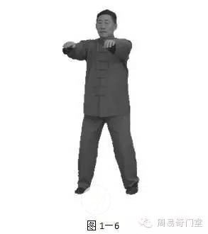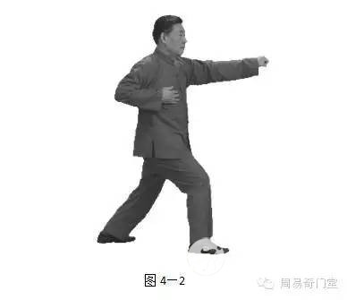 要点:左腿后蹬,腰脊迅速右转将左拳发出,使气达于左拳。本式可以发力, 也可以不发力,放松慢慢的出拳。