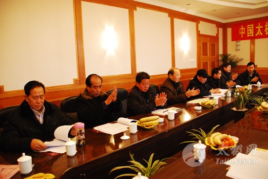| 2010年1月7日上午,中国太极拳优秀人才专家评审会在太极拳发源地温县召开,太极拳界的十三名专家到会参评。温县体育局局长宋明军代表中国太极拳文化研究基地向各位太极拳专家的到来表示感谢,并介绍了中国太极拳优秀人才库筹备的相关情况。 出席本次评审会的专家评委有:朱天才、陈全忠、陈小星、陈永福、陈照森、和有禄、郑广济、陈上党、李新、王大春、乔诺山、牛俊杰、张素珍等。 温县人民政府副县长霍晓丽出席了评审会,会议由温县体育局副局长原振海主持。