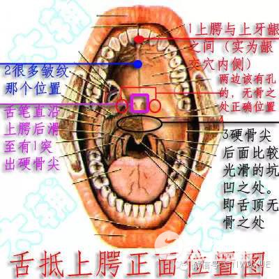 “舌抵上腭”是指在练习太极拳、八段锦、五禽戏、易筋经等内家拳以及静气功等时,舌尖须轻轻抵住上颚。舌抵上腭之原则:“嘴闭齿合,舌头尖及舌面前部自然贴在上齿龈处”。即舌尖轻轻顶在上龈齿之间。 舌抵上腭是交通阴阳,沟通任督二脉的桥梁,俗称“搭鹊桥”。 督脉起于小腹内胞宫,下出会阴部,向后行于腰背正中至尾骶部的长强穴,沿脊柱上行,经项后部至风府穴,进入脑内,沿头部正中线,上行至巅顶百会穴,经前额下行鼻柱至鼻尖的素髎穴,过人中,至上齿正中的龈交穴(唇系带与齿龈连接处)。督脉“总督诸阳”,能联系手足三阳经脉而交汇于督脉的大椎穴,所以又有“阳脉之海”之称(如图)。 任脉起于小腹内胞宫,下出会阴,经阴阜,沿腹部正中线向上经过关元等穴,到达咽喉部(天突穴),再上行到达下唇内,左右分行,环绕口唇,交会于督脉之龈交穴,再分别通过鼻翼两旁,上至眼眶下(承泣穴)。任脉“总督诸阴”,其脉多次与手足三阴经脉交会,故又有“阴脉之海”之称(如图)。 舌抵上腭使任督二脉相互交接,贯通了任督二脉,形成一个“周天循环”。首先是舌抵上腭,口腔会分泌大量的津液,可起到润喉的作用,练功时不会觉得口干、口渴。 其次是津液为人体之精华,咽下至丹田还有滋润与濡养、化生血液、调节机体阴阳、排泄废物等作用。从清气上升,浊气下降以及经脉循行的角度来看,练内功需要心静,神气内敛,守中守定,以意行气,以气运身,气遍身躯不稍滞。而心主神明,为人体五脏六腑之主,因此敛神的过程,也是调整人体五脏六腑平和的过程,使其阴阳调和,气血通畅。 还有内功的习练要求均、细、绵、长的腹式呼吸,不仅可增加肺活量,吸入更多的氧,而且由于腹式呼吸通过横膈肌的上下浮动和腹部的活动,对内脏起到了自我按摩的作用,促进了内脏器官毛细血管微循环,加大了单位时间内的血液循环,为机体组织和细胞提供更多的氧。 舌顶上腭详细图解 我们在练功时都是把舌抵在上腭上。这是为什么?这是生精补漏体的方法,是由后天返先天的方法。 舌根处有两穴,左为金津穴,右为玉液穴。舌抵上腭时津液会迅速生长,口中的津液满时,要吞下。在吞咽口水时舌尖要用力顶在上腭之上,颈部的韧带、肌肉要用力绷紧,同时把胸部、腹部的肌肉绷紧、收缩,收缩关元穴与前阴等肌肉,一直收缩到睾丸。前阴要回抽,同时用意识把这口津液送到睾丸里,这才是完整的吞下津液。此津液最易生成阳精(精足则气足,气足神必旺)。 如果不知此诀,只知舌抵上腭,津液吞下即入胃里,不起作用。津液(就是口水,在修炼中出现的口水叫琼浆玉液)是练功的重要原料。把口水吞下时一定要用意识导引,路经胸腺到肾上腺,一直到前列腺入睾丸(女性入子宫与卵巢内)。吞口水时,是气与意识在润泽各腺体,这些腺体受到润泽与刺激后,他们会快速分泌激素,促进精液的生成。 睾丸的运动非常重要,人的精力旺盛与否,与睾丸有关系。睾丸生产的激素如果能返回肾上腺,由肾上腺还精补脑后,人的精力就旺盛,能力非凡。所谓的还精补脑不是把精液反还,而是把睾丸之气回归入肾上腺,由肾上腺与肾脏的温煦气化后,上行入垂体,散入大脑内的各经络等(这是自然形成的,千万不要用意)。这种能量一旦上升进入大脑,你就会聪明健康,精力充沛。 在生活中经常把舌抵在上腭处,平时有口水时要把口水吞下,吞口水时舌不能离开上腭。古人有句话讲“口开神气散,舌张是非生”这句话的奥妙就在这里。只有舌抵在上腭处,才是人们说的24小时都在练功。晚上睡觉时舌头也顶在上腭处就是24小时练功。所谓静功中的入静祛除杂念,就是在等口水、等消息。是为了给睾丸输送能量。 我们每次练功完毕都在静养等消息,然后才收功。只有通过后天的训练、才能等消息。在静养中有很多种消息出现,此时的静一定要细心体会呼吸,只有细心的体会呼吸,才能感受到消息的来临。 在等消息吞津液中一定要把面部神经放松,嘴角一定要展开,呈似笑非笑状态,要把自己修炼的非常祥和。要把面部表情修炼的很美才行。过去,人们把“道士”称为牛鼻子老道,因为道士的面部表情非常严肃,其原因就是不注意面部的修炼。我们要修成面部美丽、祥和,心地善良,叫人看到可亲可爱才行。我们不但要心理美,还要面部美,更要健康长寿。 三、舌抵上腭:小动作也能滋补脾肾在中医里,有种功法叫“吞津练精养生法”。早在唐代,伟大的医学家孙思邈就对此法进行过概括。明代龚居中对“吞津练精养生法”也有新的见解,他指出,“津即咽下,在心化血,在肝明目,在脾养神,在肺助气,在肾生津,自然百骸调畅,诸病不生。”中医认为,津液主要有滋润、濡养的作用。吞食自己分泌的津液,有滋补脾胃“后天之本”,以固护肾之“先天之本”的功效。