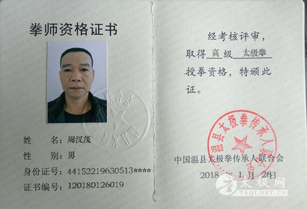 周汉茂,广东省深圳市坪山人,1963年出生。2012年开始学太极,2017年拜陈家沟太极传人孟凡为师,从此系统学陈式太极拳、械及推手至今。在学习太极拳的过程中,身体状况有了明显好转.我将继续习练并发扬。