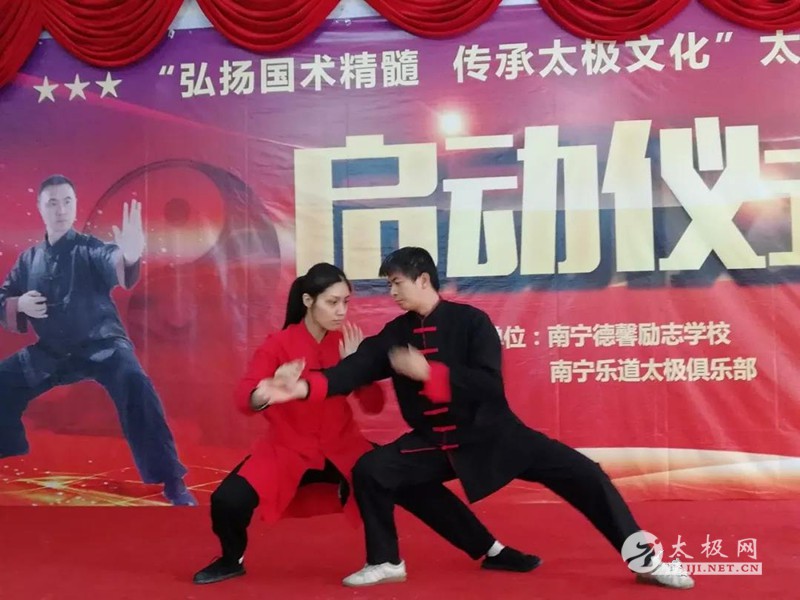 (太极网报道)2018年2月6日,在乐道太极俱乐部与德馨励志学校的共同推动下,以“弘扬国术精髓、传承太极文化”太极拳进校园活动启动仪式在南宁德馨励志学校(广西武警后勤保障基地内)隆重举行。 “太极拳进校园”,是响应中共中央、国务院印发《“健康中国2030”规划纲要》中全民推广太极拳等民族传统运动项目的号召。太极拳有着深厚文化底蕴,是我们宝贵的文化财富,学校是承载着青少年教育的重要阵地,太极拳在学校的开展有着重要的意义。 乐道太极俱乐部积极响应国家政策,在武术进校园活动中贡献出自己的力量,本次启动仪式具有重大的意义,是乐道太极俱乐部2018年迈入校园的第一步。南宁教育部门领导、多家教育机构负责人、客家商会会长,以及乐道太极俱乐部7名教练员参加了本次启动仪式。 大会上德馨励志教育董事长莫姿燕女士、南宁乐道太极俱乐部创始人董志鸿、广西经济管理干部学院原副院长、教授梁毅、德馨励志学校外联办主任许雄烈分别为本次活动致辞,并表示全力推进“太极进校园”活动,希望太极拳能够在学校大力弘扬,持续发展的愿望。 (太极拳进校园活动启动仪式开始啦) (德馨励志教育董事长莫姿燕女士致辞) (乐道太极俱乐部创始人董志鸿老师致辞) 启动仪式后,太极名家董志鸿老师为各位嘉宾和师生们讲了一堂生动的太极拳课《太极拳的魅力》,课后,德馨励志学校的学生和乐道太极俱乐部的教练们进行了丰富多彩的交流表演。 (乐道太极俱乐部教练陈文萍展示太极功夫扇) (乐道太极俱乐部教练郭敏展示太极单刀) (乐道太极俱乐部教练颜彩婷展示太极剑) (乐道太极俱乐部教练郭敏、苏庆展示太极推手) (乐道太极俱乐部教练陈文萍、夏侯选诗、尹培莹展示陈氏太极老架十三式) (乐道太极俱乐部创始人董志鸿老师压轴展示陈氏太极拳新架十八式) (活动结束后合影留念 ) 责任编辑:太极网小曼 |