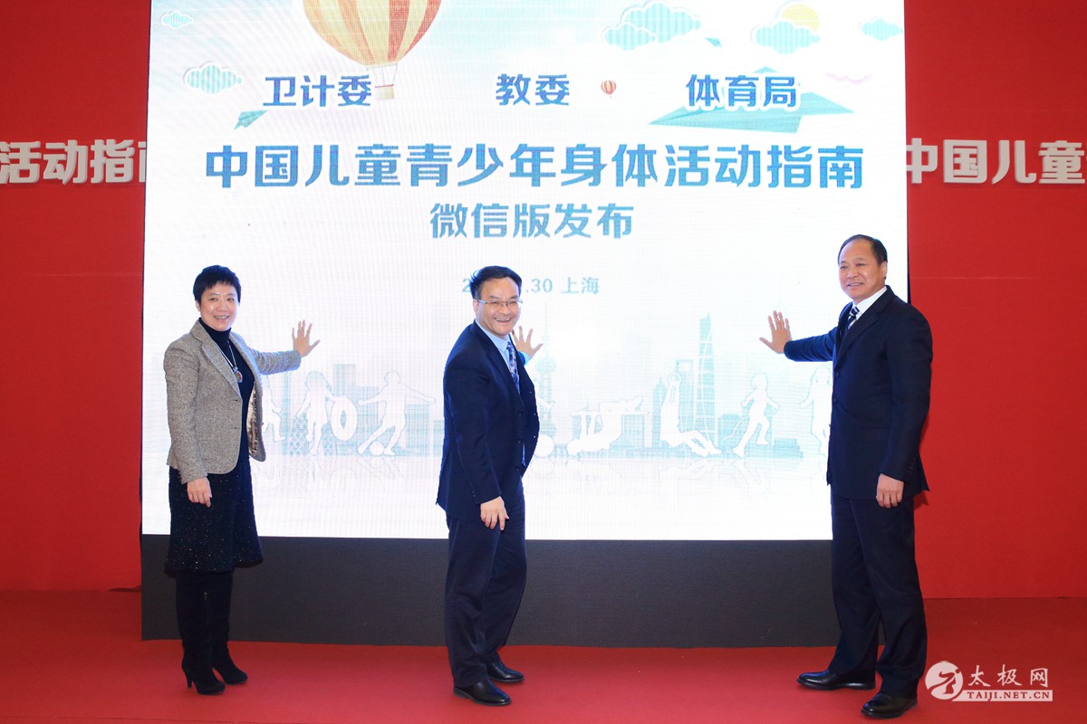 (太极网报道)1月30日下午,在“上海市加强公共卫生体系建设三年行动计划(2015年-2017年)”课题支持下,由国家儿童医学中心、上海交通大学医学院附属上海儿童医学中心牵头,联合上海体育学院、复旦大学附属儿科医院临床指南制作与评价中心合作制作完成的国内首部《中国儿童青少年身体活动指南》正式发布。发布会上,儿童医学中心江帆教授、上海体育学院陈佩杰教授分别作了指南介绍和背景解读。上海市卫计委副主任吴凡、上海市教委副主任倪闽景、上海市体育局副局长赵光圣共同启动指南微信版发布,并分别致辞。上海市卫计委党委书记黄红、儿童医学中心院长江忠仪向各区县体育局代表、教育局代表、学校及家长代表赠送指南。 本指南的主要目标人群为健康的6-17岁的儿童青少年,在国内首次提出了中国儿童青少年每天身体活动的推荐量。在充分参考了国际上28个指南的推荐意见的基础上,指南推荐:儿童青少年每日应进行至少累计60分钟的中高强度身体活动,包括每周至少3天的高强度身体活动和增强肌肉力量、骨骼健康的抗阻活动。除身体活动之外,本次指南还专门强调了久坐行为问题,强调即使达到了每天推荐的60分钟的中高强度身体活动量,如果每天仍有较长时间的久坐行为,依然会对健康产生不利影响。为此,指南特别建议儿童青少年每日屏幕时间应限制在2小时内,并减少持续久坐行为,在课间休息时应进行适当的活动。