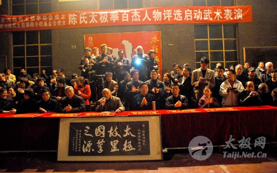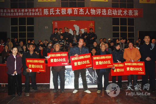 阳春三月,春暖花开,在这个美好的季节里,太极拳发源地陈家沟又迎来了三大喜事。太极拳大师陈小旺、陈小星以及陈家沟陈氏家族理事会成员、陈氏太极拳协会各地分会的会长及陈氏太极拳百杰人物代表齐聚陈家沟太极拳学校,共同祝贺陈家沟陈氏太极拳协会成立、陈家沟陈氏太极拳陈小旺基金会成立以及陈氏太极拳百杰人物评选活动的启动仪式。 走进陈家沟太极拳学校,到处可见习练太极拳的人们,他们中间,有本地的太极拳爱好者,更多的是一些金发碧眼的外国朋友,他们不远万里来到太极拳圣地陈家沟,习练太极拳。在太极拳大师陈小星的指导下,他们手拿太极剑,悉心学习一招一式,虽然大家做得动作看起来很不规范、很不协调,但从他们的神情当中我们仍然可以看得出他们学习是十分认真的。 和院内安静习练太极拳的人们相比,陈家沟太极拳学校的会议室内气氛却相当热烈。陈家沟陈氏太极拳协会成立、陈小旺太极拳发展基金会成立以及陈氏太极拳百杰人物评选活动启动仪式正在举行。 近年来,太极拳事业蓬勃发展,陈家沟早已成为各地太极拳爱好者向往着的圣地。弘扬太极拳,建设陈家沟,已成为陈家沟人义不容辞的责任。太极拳大师陈小星在各地教拳的过程中,了解到太极拳爱好者希望在陈家沟成立太极拳协会的意愿,经过向有关方面申请,2008年获得县体育局正式批复,准予成立陈家沟陈氏太极拳协会,经过两年多的试运行,取得了良好效果,在我国及世界各地发展了30个陈式太极拳分会。陈氏太极拳协会的宗旨是继承和弘扬陈氏太极拳,让太极拳这个优秀的民族文化造福人类。协会的主要任务是研究、宣传、普及、推广陈式太极拳;挖掘、、收集、整理太极拳文化资源;开展太极拳文化交流,举办竞赛活动;扩大陈氏太极拳师队伍,开展太极拳理论研究和学术交流。 来自河北邯郸陈氏太极拳分会的苏建平会长说:陈家沟因为太极拳事业的发展而名扬海内外,很多有识之士都愿意为太极拳的发展,为陈家沟的振兴慷慨解囊,但是陈家沟一直没有一个接受捐助的组织。陈家沟陈氏家族理事经过协商,决定成立以陈小旺命名的太极拳发展基金会。 太极拳是一种极富中国传统文化特色的运动形式。太极拳事业的发展,为改善、增强人类体质,促进对外交流,发展旅游事业起到了重要作用。开展百杰人物评选、命名活动,是为了宣传表彰长期以来坚持自觉自发地开展太极拳文化传播工作的拳师,进一步推动太极拳事业的发展,促进陈氏太极拳更好地为人类社会服务。“陈氏太极拳百杰人物”是陈家沟陈氏太极拳协会、陈氏家族理事会授予为太极拳事业做出贡献者的最高荣誉。 晚上,在太极拳学习训练大厅,陈小旺基金会向马玉山、陈友雷、陈玉凤等六位贫困村民各捐助了500元。捐助仪式后举办了别开生面的太极拳汇报表演,来自全国各地的太极拳精英参加表演,陈小旺大师亲在到场观看并做了精彩表演,训练大厅掌声不断,气氛热烈。