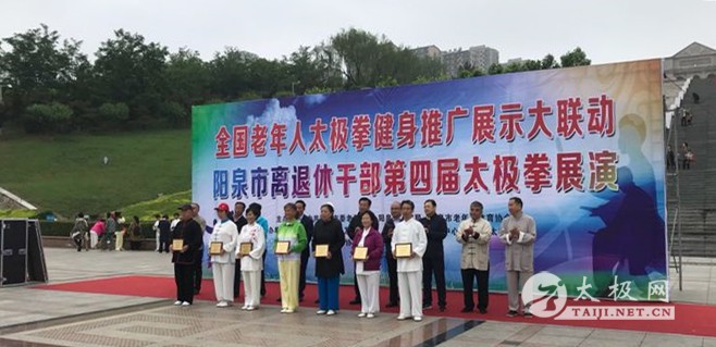 (太极网报道)2018年5月20日,全国老年人太极拳健身推广展示大联动暨阳泉市离退休干部第四届太极拳展演在阳泉市北山公园隆重举行。本次活动由中共阳泉市委老干部局、阳泉市体育局、阳泉市老年人体育协会主办,阳泉市老干部活动中心、阳泉市开发区管委会、阳泉市太极拳协会承办,阳泉新华医院协办,展演吸引了阳泉市三区两县24支队伍逾300人参加。 活动现场 据了解,举办此次展演活动,旨在弘扬中华民族优秀传统文化,助力阳泉市五城联创,共建美好健康家园。同时,积极为阳泉市广大老干部,老年人强身健体搭建平台,展示阳光心态,体验美好生活。通过本次展演活动,让大家相互交流,互相学习,进一步提高阳泉市老干部、老年人体育健身活动水平,进一步推动阳泉市老干部、老年人体育健身活动开展。 300余人集体同练太极24式 展演中 老年大学太极13班 矿区龙行剑队 南山松鹤辅导站,阳煤四矿 文化广场辅导站 平定太极拳协会 老年大学1队 阳泉一监 老年大学太极拳学会,南山老干部活动站 郊区老干局,北山公园太极拳协会 阳煤宏厦一建 阳煤二矿 矿区太极拳协会 平定小树林 城市广场辅导站 陈氏混元南山辅导站 阳煤三矿,老年大学太极14班,神韵太极队 城区杨氏太极拳协会 矿区老年大学 本次展演活动共评出优秀组织奖11名,优秀奖5名,优胜奖7名。阳泉市太极拳协会会长王仲文表示,太极文化博大精深,希望能够通过本次展演活动共同推动太极养生,全民健身,实现文化养老繁荣发展,让太极更好的为老干部和老年人服务,为山城百姓造福。 本站编辑:太极网陈超 |