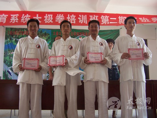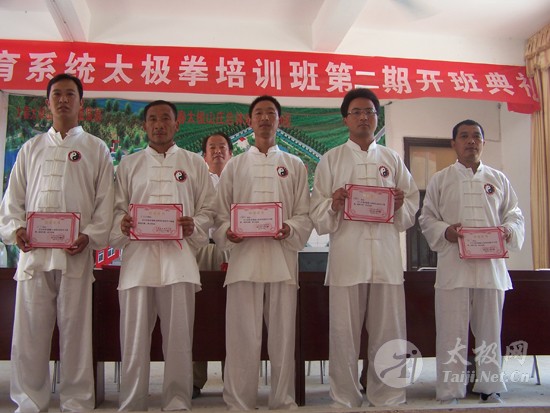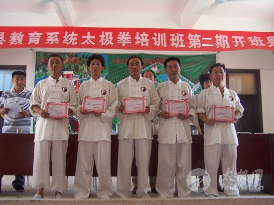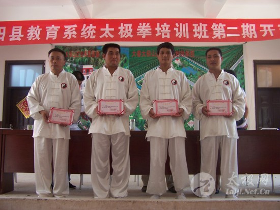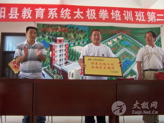 8月21日,正阳县教育系统第二期太极拳培训班第三批学员的结业典礼在大春太极山庄演武厅举行。这是大春太极拳培训班的最后一批学员. 局领导在结业典礼上 三班一组学员向山庄赠匾“传承太极文化,弘扬武术精神” [page] [page] 第三批学员合影像 |