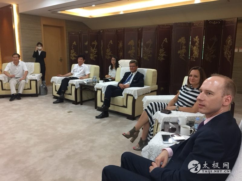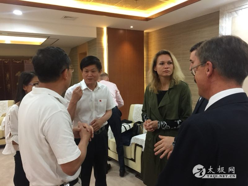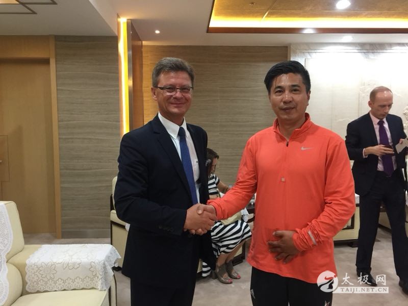 | (太极网报道)6月9日,天津理工大学迎来了波兰华沙市副市长Darius Wolke先生一行,天津市武术协会苏长来主席、天津理工大学武术学院总教练徐彩桐女士、天津市青少年武术培训基地李金山主任、太极拳协会王鸿霖会长在天津理工大学体育馆贵宾厅举行了隆重的欢迎仪式,并进行天津-华沙及中国-波兰两国、两地互访国际交流项目的合作事宜的洽谈。 王鸿霖会长与波兰华沙副市长一行 天津市武协苏长来主席带队与波兰华沙副市长一行举行合作洽谈事宜 波兰华沙副市长与太极拳协会王鸿霖会长亲切交谈 双方就国际合作交流达成共识并商谈具体落实细节 苏长来主席带领国际友人参观体育场馆、健身设施及训练基地 国际友人参观武术训练基地和观摩队员训练 在孙纬业先生引介下,双方很快就两国、两地国际互访交流达成共识,并确定了具体实施方案。会议结束后苏长来主席引领嘉宾参观了天津理工大学体育场馆和专业队训练基地。在武术专业训练场地给国际友人们留下了深刻的印象,观摩后Dariusz Wolke副市长兴致盎然持太极剑在场地一显身手。 观摩后天津理工大学管理学院王京滨院长、天津市教委外事处张健青处长、天津理工大学国际交流处周冕处长,专程前来欢迎远道而来的国际友人们。中国武术是中华民族之瑰宝,借“一带一路”之春风正以崭新的姿态走向国际。 责任编辑:太极网小田 |