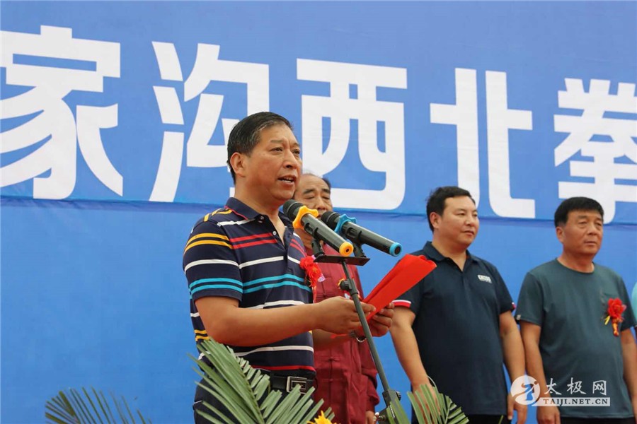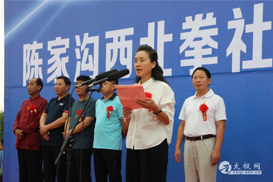 温县人民政府副县长李美玲宣布陈家沟西北拳社培训中心奠基开工,奠基仪式由温县非物质文化遗产保护中心主任闫忙种主持。