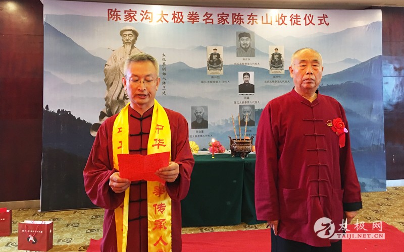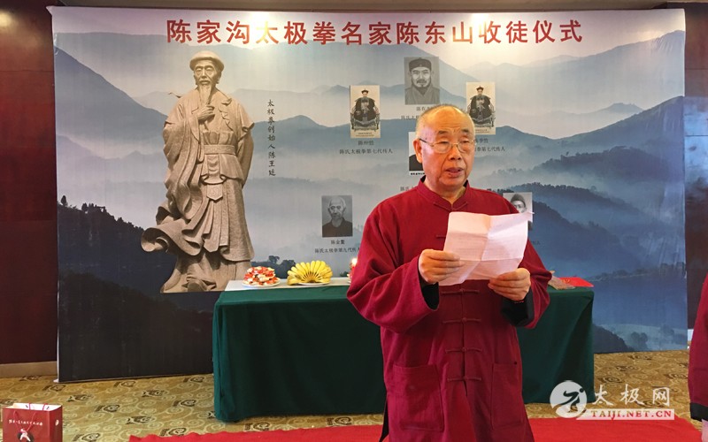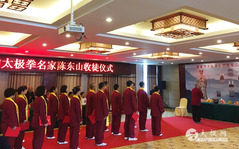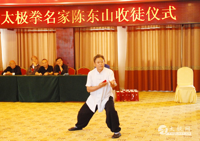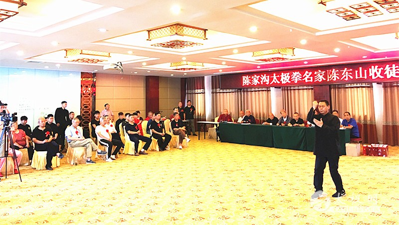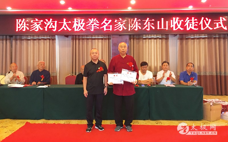 (太极网报道)根源圣地陈家沟,太极传承薪火续。9月2日,陈家沟陈氏太极拳传承人、太极拳名家陈东山收徒仪式于太极拳发源地温县陈家沟王廷大酒店举行,王冠月等25名来自秦皇岛和西安等地的太极拳爱好者经过师门审核考验,今日通过传统拜师仪式拜入陈东山老师门下,正式成为陈式太极拳 第十二代传承人,为太极拳的传承和传播增添新生力量。 陈东山及其夫人 出席收徒仪式的嘉宾有: 温县非物质文化遗产保护中心主任闫忙种 温县体育局原局长原福全 开封市武术协会张明、魏江辉 西安陈鑫太极拳法研究会会长陈孝龙 西安陈金鏊太极拳学会常务副会长张勇刚 西安子明太极拳研究会会长王胜利 陈家沟陈氏家族族长陈景安 陈家沟太极拳名家陈东海、陈立法、陈启亮、陈长义、陈春生、陈向武、陈瑞华、陈国胜等 参加本次仪式的嘉宾 太极网创始人、温县太极拳传承人联合会主席刘洪奇应邀出席活动,刘洪奇对陈东山老师高度评价,称陈东山老师是当今陈氏太极拳小架的杰出传承人,传拳授道、著书立说、影响巨大,并在仪式现场向陈东山老师颁发“太极网首席武术导师”聘书和“大拳师·百家讲堂”主讲人荣誉证书。 刘洪奇向陈东山颁发荣誉证书 陈家沟陈氏家族理事会陈石岩主持本次收徒仪式,陈家沟陈氏家族族长陈景安致欢迎辞。 仪式开始前,陈家沟陈三虎太极拳文武学校献上了精彩的太极拳械集体表演,陈氏太极拳小架名家陈启亮、陈春生、陈长义、陈瑞华、张明、张勇刚、王胜利以及弟子代表赵东仁等依次登台表演,现场掌声不断,观众大饱眼福。陈家沟太极拳传承人、汕头尚武太极拳馆全部总部馆长陈向武压轴表演引得满堂喝彩,将现场气氛推向高潮。 陈启亮表演 陈瑞华表演 陈春生表演 陈长义表演 陈立法表演 张明表演 张勇刚表演 陈向武表演 陈向武表演 陈三虎太极拳文武学校集体表演 拜师仪式正式开始,陈东山代表众弟子向太极拳始祖及历代宗师 敬香行礼,缅怀先祖创拳之辛劳,感念先师传拳之恩德。 新入门弟子宣读拜师贴并依次上前递交拜师贴,师父回帖 ,新入门弟子向师父行拜师大礼。 陈东山收徒仪式现场 陈东山向新入门弟子训话中表示,希望大家恪守门规祖训,认真习练太极拳,用心体悟太极文化,真正肩负起传承太极拳,弘扬太极文化的历史使命,为太极拳事业的 发展不懈努力。 陈东山向新入门弟子训话 新入门弟子赵东仁代表发言,他表示非常荣幸能够拜入陈东山老师门下,一定会珍惜这来之不易的师徒缘分, 尊敬师长,爱护同门,互助互爱。一定牢记 师父谆谆教诲,勤学苦练、锲而不舍、明理筑基、德艺双修,以毕生精力学练和传承陈式太极拳小架,为太极拳的发扬光大积极奉献。 新入门弟子赵东仁(左)代表发言 闫忙种在致辞中对陈东山老师表示祝贺,闫忙种说,陈东山老师德艺双馨,为温县太极拳的传承和传播颇有贡献,希望在师父的带领下新弟子们能继续为太极拳的发展贡献力量。 西安陈金鏊太极拳学会常务副会长张勇刚受西安市武术协会副主席刘永强委托向收徒仪式致祝贺词,代表西安市全体武术人向陈东山老师表示祝贺,对陈东山老师立足西安面向全国为陈式太极拳小架的传播和推广所付出的心血给与肯定和赞扬, 并希望新弟子们能够在太极之路上不忘初心、砥砺奋进奋进,为陈式太极拳的传承做出自己的努力。 闫忙种(左三)致辞 张勇刚致词 王胜利致辞 陈东山与刘洪奇共同为新弟子颁发太极拳传承人入谱证书,弟子们领到证书后纷纷表示更加有了太极拳的传承归属感和使命感,身上的责任和担当更重了。 陈东山与刘洪奇共同为新弟子颁发太极拳传承人入谱证书
