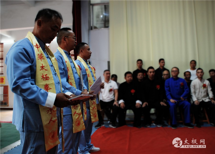(太极网报道)2018年10月2日,尊古太极传人、太极拳名家陈有京在温县庆州武院举行收徒仪式,刘伟荣、万递禄、朱耀伟三名太极拳爱好者拜在陈有京先生门下,加入陈氏太极拳尊古体系,为尊古太极增砖添瓦。太极网创始人刘洪奇主持了本次收徒仪式。 出席嘉宾 太极网创始人刘洪奇主持收徒仪式,他表示非常荣幸能够在这里见证和主持陈有京先生的收徒仪式,同时代表太极网、太极拳传承人联合会向陈有京先生以及他的弟子们表示祝贺,向各位嘉宾的到来表示感谢,同时也向各位来宾表示节日的祝福。 拜师仪式正式开始,陈有京先生向历代太极拳宗师及太极拳先贤敬香祭酒,弟子们向师父宣读拜师贴、行鞠躬礼,向师父师母敬茶;陈有京一一为新弟子披挂绶带,回弟子帖,并向新弟子颁发传承证,随后陈有京先生带领弟子向太极拳历代先贤敬香,带领新入门弟子集体叩拜,三位弟子正式成为尊古太极门下弟子。 新入门弟子代表发言,他表示今后将会谨遵师父教诲,认真习练太极拳,持之以恒,坚持不懈,为早日成为优秀太极拳传承人不懈努力。 鉴证人代表王成龙讲话,希望大家刻苦努力,同时他也祝愿拜在陈有京先生门下的弟子能够在师父的教导下快速成长起来,提升太极拳技艺水准,加深太极拳文化理解,为太极拳事业的发展做出更多更好的贡献。 陈有京老师向新弟子训话,希望弟子们能够尊师重道,恪守门规祖训,用心习练太极拳,努力成为合格的太极拳传承人,为太极拳的传播和推广做出自己应有的贡献。 合影留念 拜师仪式圆满成功,新弟子们一一向各位嘉宾鞠躬致谢,所有人员合影留念,收徒仪式圆满结束。 陈有京太极档案: 陈有京,男,出生于1964,温县黄庄镇徐吕村人,陈庆州弟子。出生于太极世家,自幼随父陈庆州学习家传陈式太极拳,几十年如一日,刻苦练习,细心钻研,深得拳术精华,一直在家协助父亲办校,授拳。上世纪八十年代起,应邀走出家门,先后到深圳、温州、扶沟、义乌等地授拳,从者众多。有不少弟子在各级各类比赛中取得优异成绩。 责编:太极网辛 |