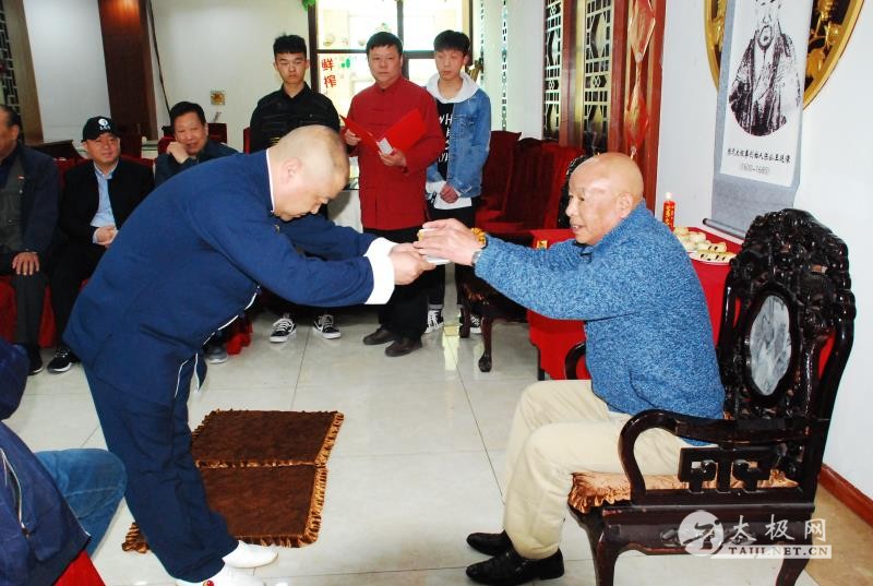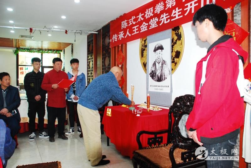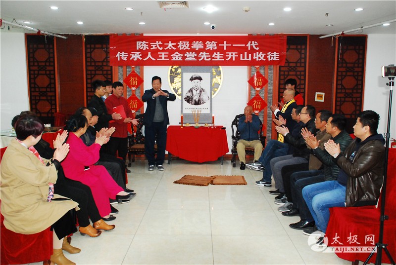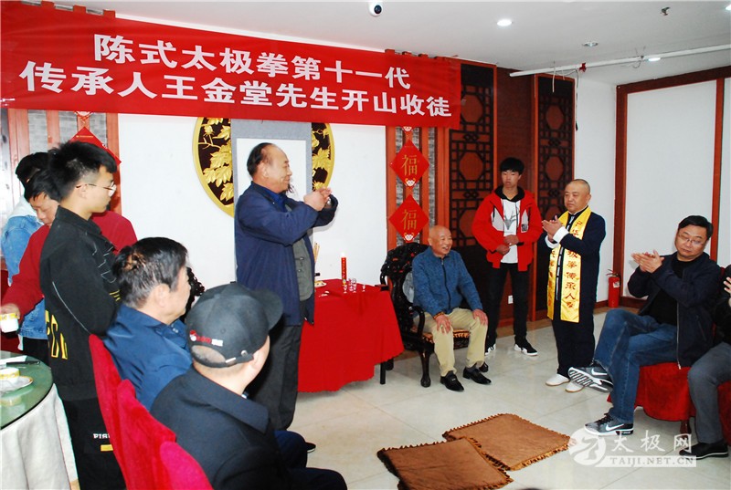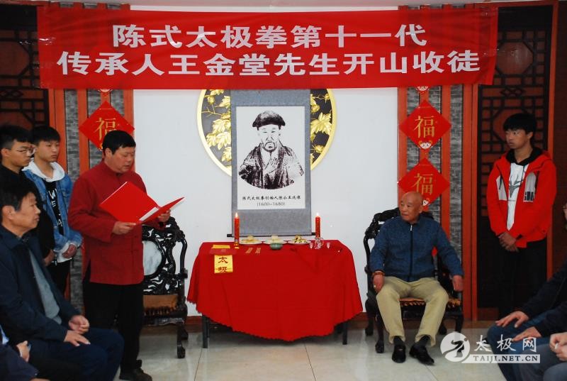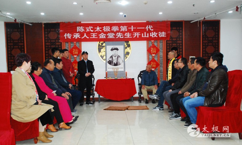 王金堂收徒仪式现场 (太极网 开封报道)2019年3月30日,陈伯祥大师弟子、陈式太极拳第十一代传承人王金堂开山收徒,收徒仪式于开封举行。太极拳爱好者魏江辉在众人见证下正式拜入王金堂老师门下,成为开山大弟子,正式肩负起弘扬太极精神,传承传播太极拳的责任。