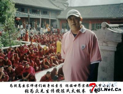 五台山是著名的世界文化遗产、佛教圣地,能来这里传授陈氏太极拳是我一生中最大的荣誉。我深知祖国传统文化的深厚和太极拳的博大精深,深感自己不足和责任重大。在果诚法师和悲慈法师的热情接待下,我与他们精心挑选的小师傅们进行亲切的讨论,从他们那稚嫩的脸上和表情中,我深深体会到他们对传统文化的渴望,和对学习陈氏太极拳的强烈愿望。他们最小的只有15岁,最大的才21岁,他们在练习陈氏太极拳的过程中,那种吃苦耐劳的精神和努力理解太极拳的拳理与拳法以及间架结构的合理与运用,没有一个人叫苦,使我很受感动。他们每天除了上早晚课,还要练拳3小时,晚上还要站桩1小时,起初他们由于对拳架不能够正确的把握,个个腰酸腿痛,再加之我对他们的严厉要求,使他们一时适应不了。可是没有一个说不的,晚上我和他们探讨佛法,他们对金刚经、坛经、楞严经等经典的理解,使我很是惊讶和对佛法更是充满坚定的信心。我觉得佛法不是宗教,而是教给人们开启智慧的一把钥匙。他们这么小的年纪,竟能有如此高的佛法境界,使我自愧不如。斗大的黄金印,天高白玉堂。不读书万卷,焉得伴君王。转眼两个月的时间过去了,看着他们每天在群山环抱的寺院里,在青松古柏之间练拳的身影和金刚捣碓的震脚声,使我很欣慰。并和他们约好,以后不管我有多忙,每年都会来这里两次,小师傅们眼含热泪在整齐的阿弥佗佛的佛号声中,送我上车,他们送我的礼物和报酬被我拒绝了,因为我知道他们的生活是受十方供养,我是他们信任的人,更是一个虔诚的佛教徒。