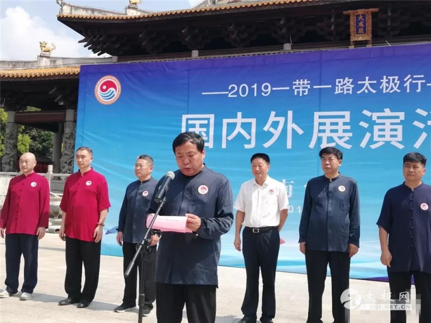 当日,南宁市人大常委会副主任阮兆丰,焦作市人大常委会副主任葛探宇,温县县委常委、组织部长、县产业集聚区管委会主任朱保平,温县县人大常委会副主任马振军,桂平市人大常委会副主任王锦芳以及当地武协的相关负责人参加了展演活动。 南宁市人大常委会副主任阮兆丰致欢迎词 阮兆丰首先致欢迎词,他指出了“一带一路”建设为中国的发展写下了辉煌的篇章。太极拳作为中国瑰宝,乘着“一带一路”的东风向世界展示中国武术文化的魅力,向世界共享中国武术发展的成果,不断谱写太极拳事业的新篇章。 焦作市人大常委会副主任葛探宇致辞 葛探宇在致辞中表示,太极拳发源于河南省焦作温县陈家沟,由陈王廷创编,至今已有400多年历史。太极拳发源于河南焦作温县陈家沟,由陈王廷创编,至今已有近400年历史。它吸纳了中国传统儒、道哲学,体现了阴阳辩证思想,融和了技击、健身、养生等功能,具有强身健体、陶冶情操、修身养性、益寿延年的神奇功效,受到广泛欢迎。同时,作为中国传统文化的重要代表,太极拳具有鲜明的中国风格和独特魅力,成为风靡世界的健康运动品牌和连接不同种族、不同民族、不同语言、不同国家的文化纽带,更是中国文化对外交流传播的重要载体。 陈家沟优秀太极传承人、南宁乐道太极院院长董志鸿宣读倡议书 董志鸿在倡议书中提出,太极拳经过近四百年传承发展,衍生出诸多流派,传播到世界150多个国家和地区,习练者达数亿人。2006年,陈式太极拳入列首批国家级非物质文化遗产名录;2007年陈家沟被中国民协、中国武协命名为“中国太极拳发源地”“中国武术太极拳发源地”“中国太极拳文化研究基地”。 他倡议,让我们共同携手,坚定“四个自信”,助推太极拳这一优秀传统武术文化瑰宝在国内的传播,为实现中华民族伟大复兴的中国梦,凝心聚力! 接着, 南宁市人大常委会副主任阮兆丰宣布展演活动启动,由乐道太极院院长董志鸿带领学员们演练陈式太极拳十三式。 2019年一带一路太极行展演视频(南宁站) 活动现场,70余名南宁乐道太极院的学员共同演绎了刚柔相济的陈式太极拳,时而步伐轻灵沉着、时而动作柔和缓慢,精湛的技艺、流畅的动作,将太极拳的魅力展现得淋漓尽致,让现场观众深刻领略了太极拳这一文化瑰宝的独特魅力。 南宁市人杰地灵,习练太极拳者众多,氛围浓厚。南宁乐道太极院以"荟萃国学精英,传承太极精髓"为宗旨,以“让太极生活化,让国学平民化”为愿景,以“继先贤绝学,传太极薪火”为使命,在南宁市中心城区建立了800多平方米的太极院,广纳来自世界各地的太极拳爱好者,共同传承与宣扬中国传统文化以及陈式太极拳的文化底蕴。 此次,参与演练的70多位乐道学员纷纷表示,今后将共同携起手来,打造“南方陈家沟”,响应国家“一带一路”的号召,不忘初心,担当使命,以陈式太极拳为重要载体,大力弘扬中国传统文化,太极文化,展示太极魅力,共同向世界传播“共享太极·共享健康”的健康生活理念。 “阴阳合于道,太极一家亲!” 2019年一带一路太极行展演图集(南宁站)