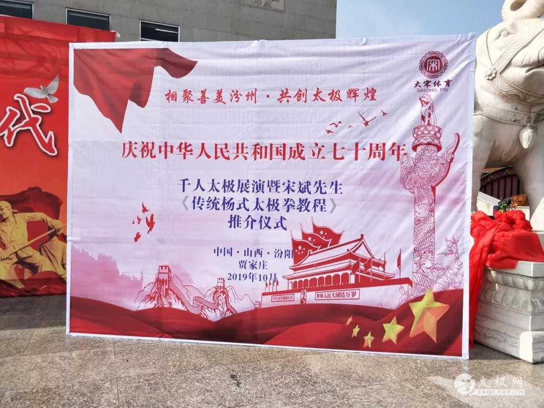 (太极网报道)共贺新中国成立七十华诞之际,大宋体育在美丽的贾家庄举办千人太极展演,来自全国三十多个基地的骨干学员与汾阳及周边的拳友共同组成千人太极方阵,为祖国献上一份别样的贺礼。 与此同时,各个基地也在开展着自己的千人展演活动,同在蓝天下,共演太极拳,一同为新中国成立七十周年庆生。 宋斌先生痴迷太极多年,拳承正脉,学而不厌,诲人不倦,多年经验积累,并在华南理工大学老年大学的大力支持下总结成册,回报广大太极拳爱好者。动作准确、文字简洁,化繁为简、一目了然。 宋斌先生第四次收徒仪式,继续扩大大宋体育的基地版图。更有一批95后、00后的加入,增添年轻血液,共创更大辉煌。 责编:太极网小杨 |