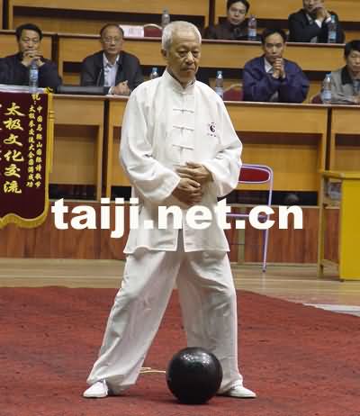 河南温县陈氏太极传人、陈庆州老先生在观看完比赛后回宾馆休息,陈老先生今年刚过了七十大寿,由于长年习练陈式太极拳,精神矍铄、鹤发童颜,虽说70岁了,但依然步履稳健,不减当年。他刚走到下榻的马鞍山市金都宾馆门口,突然,一辆轿车嘎然停下,车上下来一个彪形大汉,见面就问:“你就是昨天晚上表演太极球的?”陈老先生说:“是啊”。这时只见大汉冲了上来双手想从后面抱住陈老先生,嘴里还说:“我是练摔跤的,就是来试试你的太极功夫!”陈老先生处于自然反应,瞬时抓住大汉的手,一个采拿,顺势一发,只见大汉四脚朝天,已到在三米开外。大汉不服,爬起来又冲了上来,这次是从前边,陈老先生顺手牵羊,一个捋劲,大汉栽倒在地;他起来后还是不服,第三次冲了上来,结果还是倒在三米开外。整个过程不到十分钟。