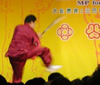 “当晚有大约20位从新加坡, 马来西亚与中国的老师在这次的交流会表演。 所表演的套路包括陈,杨,孙,八卦。 兵器项目有刀,剑,春秋大刀,长杆。 陈瑜老师先表演了陈式刀。 当晚的压抽项目就是陈老师表演新架二路。 (在新马,是有分老与新架)。 在场的观众都静了下来, 好好的观赏陈老师的表演。 陈老师发劲自如,身手敏捷, 好一个“翻花舞袖”!。 演练过后, 台下的掌声如雷。” 上面是新加坡网友ZEEZ先生的介绍,当晚,ZEEZ先生就在现场,将现场的情况做了短小而精彩的记录。 根据大家反映,当晚师父陈瑜先生的表演非常成功,在当地引起强烈反响。 再次感谢ZEEZ先生提供的文字介绍和图片介绍,谢谢。 胡伟航