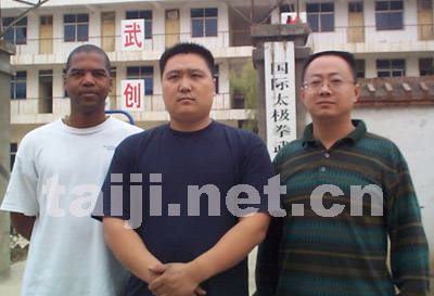 前来参加首届世界传统武术节的美国太极拳爱好者史丹利先生左起:美国太极拳爱好者史丹利、陈二虎老师、翻译王先生