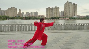 陈丽芬:杨式40式太极拳竞赛套路 陈丽芬参与太极网主办的寻找最美太极人——2020“红棉杯”第六届国际太极拳网络视频大赛,表演杨式40式太极拳竞赛套路。