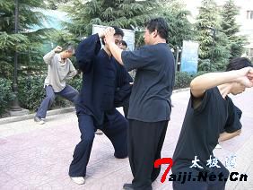 一、我的太极拳情结 生在河南根子里或许流淌着尚武的血,自小就很喜爱武术。在很早的时候看到与接触到的大都是外家功夫,很是羡慕。年少时也曾舞过刀耍过棒打过沙袋练过铁掌。可随着日月流长岁月消逝,当年的雄心早不复返。伴着年龄的增长,也不愿再做那些巨烈撺蹦跳跃地运动了。但喜爱武术的热情却一直没有减退。总想寻觅到一种即能健身锻炼又能强身自卫的拳术,这时朋友介绍到太极拳。初次接触太极拳是朋友领我去公园,当时有人在那里教拳,看到后大失所望。好多的老太婆与老大爷在那里比划,我哑然失笑。我还没到天天与老人们一起玩耍的年龄哦!我逃也似地跑去。自此在我心中对太极的偏见就是:那是老年人玩的健身项目,与我格格不入。 直到有一天我的另一位朋友告诉我:寺院山门外有教太极拳的,让我去看看。禁不住朋友的劝说带着种种的疑惑,我骑车赶往山门。远远地看到好多人围在那里,不时地还传来阵阵叫好声。我急忙挤了进去,看到中间空地上有位师傅正在练拳。只见他时而静若处子卷曲缠绕绵绵悠长,时而猛虎下山刚劲有力虎虎生风,动作舒展大方如行云流水般,看到最后简直已被陶醉心底发出了震颤般的呼声:这不正是我苦苦寻觅所要学的拳术吗?等老师拳毕,我急忙围了上去问道:你刚才所练的是太极拳吗?怎么没有见过?跟公园内练的外观差距怎么这么大呀?那位老师笑着答道:我练的就是太极拳,是正宗的陈氏太极拳大架一路83式,你以前见到公园里的与我刚才练的比起来只能算是太极操不能算是太极拳。通过交流使我对太极拳有了新的认知,遂报名参加了培训班。刚学时总觉得容易看看就会,可真正自己一招一式的比划起来,真的太难了。学了几天只学会二式,而第一式则是个起式。渐渐的有些灰心。这时老师告诉我:学这套拳与公园里学练的拳就如学骑自行车,要在二个前后轮上骑上就跑,是不可能的,总要下些功夫。而骑三轮车可以不学骑上就能行走,而有些人为啥不愿骑三轮而非要学阵子自行车呢?听罢老师所言感慨很深,道理虽浅但意味则深远。从此沉下心来一招一式学起,虽然苦但是苦中有乐。通过练拳结识了好多喜爱太极的朋友,平时练罢拳大家一起喝酒游玩谈天叙地其乐也融融。 一天练罢拳与老师交流,老师说:你们没事时可上网查询下陈氏太极拳的信息,北京有位叫陈瑜的,那可是正宗的家传陈氏太极拳功夫。如今中国出了名的太极拳高手基本上都是他父亲的弟子。陈瑜老师的功夫更是出众,人称“将门虎子”那才叫真功夫呢!有机会你们去他那里领略一下什么叫真正的太极功夫。从此北京陈瑜老师那里成了我们几位河南太极爱好者的理想圣地,总想有机会去好好的学习一下。机会它终于来了!!! 二、跟陈瑜老师学拳 十一前夕,从网上得知陈瑜老师在十一假期内将开办二路培训班。奔走相告后我们三人决定前往心中的圣地去。一夜火车我们于2006年10月1日一大早来到了位于崇文区沙子口的富莱茵花园。这里是陈瑜老师的住处及培训班的授课地点。由于提前电话联系,陈瑜老师的夫人张老师早早的在大门口等候我们。见到我们,张老师热情地让弟子带我们三人先到附近的旅馆安顿好住宿。草草的吃过早饭,来到了富莱茵花园内的授课地点。陈老师早已来到,正边做热身边等候着我们。按照时间安排10月1—6日每天上午8:30分—11:30分下午2:30分—5:30分为授课时间,期间主要学习二路炮捶及部分实用技击用法。时间到陈瑜老师把大家叫到一起,一番介绍后开始第一节授课。先从最基本的站式开始,陈老师详细介绍了练拳的起式与表演的起式。带领大家一遍又一遍地重复着一个动作直到大家掌握为止。看到陈师如此身体力行不厌其烦地做着一个又一个的重复动作,为他的敬业而深深感动,感叹不已!来之前一路上我们三人还想象着陈师办班可能也就是让二位门里的弟子带着大家练习,最多是陈师搬把椅子坐在旁边端把茶壶能看上两眼也就不错了,谁知竟是如此的敬业。一上午教大家五式,每个动作从慢到快、由快到跳跃,手、眼、身法以及重心的转换都详细做了示范。一遍遍的带练看到大家基本上都学会才停下来。 为活跃学习班的气氛,使大家有个轻松的心情学习,陈老师和大家聊起天来。为了让我们对太极有更直观的了解陈师决定让我们试试他的太极力道。我在我们班算是块头比较大的一位了,决定让我先试。在我的一再央求轻些再轻些的情况下,我扎好架式。只见陈师把他的左掌背垫在我的左胸部右拳贴近左掌只轻轻的一抖,感觉胸部犹如铁锤重击眼冒金星头脑一片空白,身体则如断线的的风筝般向后飘去。要不是周围有同学们站着扶我还不定摔成什么样呢!同学们看到我痛苦的样子都问我感受如何?当时话也懒得说只想休息。过后同学们都说:也没见陈师怎么用劲,你怎么就出去了呢?不会是“配合”的吧?我告诉他们你试试就知道啦!!! 在休息中陈老师还讲了很多鲜为人知的太极知识及太极渊源,对于别人称他为大师他十分谦虚地说道:大师是你们叫的,是你们封的,我可不敢当。我离大师这个称呼还差很大距离呢!谈笑休息间使大家在这里即学到了拳艺又增加了知识,更看到了陈瑜老师的品德。陈师看到大家在学拳过程中有些招式掌握不够准确遂穿插着讲些招式的基本技击用法,特别是每招定式中的裹、卷