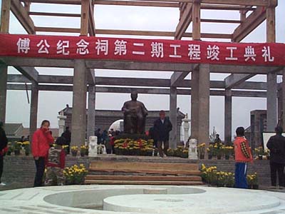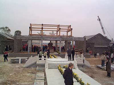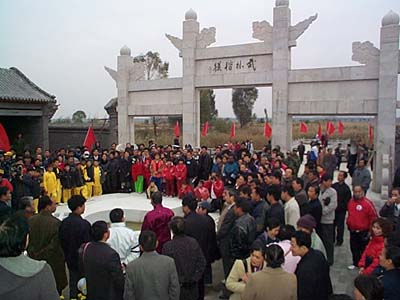 | 今天,永年国际太极拳交流大会进入第三天.上午各项比赛已经结束。下午,大会组委会安排各地太极拳爱好者参观了杨式太极拳和武式太极拳的发祥地——广府古城。 广府城外,芦苇荡漾,碧波涟漪,仿佛在欢迎世界各地的太极拳爱好者。天气虽然寒冷,但大家依然热情高涨,兴致勃勃地参观了武禹襄故居和杨露禅故居,并参加了傅中文大师陵园二期工程峻工典礼仪式。 武禹襄故居座落在广府城里,是一座古老的、二进式的四合院,前院矗立着郝为真和李亦畲两位太极前辈的汉白玉塑像,太极拳爱好者纷纷在塑像前合影留念。上房为主房,供奉着一代宗师、武式太极拳创始人武禹襄的塑像,屋内香烟缭绕,一派庄严肃穆的气氛,拳友们纷纷燃香一把,祭拜这位武林泰斗。永年县政府投资18万元准备对其进行修缮,下一届交流大会它将以崭新的面貌迎接各地的太极拳爱好者。 杨露禅故居座落在广府城外南关,门前开阔,也是二进式四合院,前院是杨露禅起居处,屋里两侧偏房悬挂杨露禅三下陈家沟学艺的故事简介,和杨氏历代传承表。中间供奉着一代太极宗师“杨无敌”的金身塑像,来自世界各地的太极拳爱好者纷纷磕头拜祭,表示对一代宗师的敬仰之情。后院是永年县人民政府对修缮杨露禅故居做出贡献的人立碑叙传的碑廊。 4:30,我们来到了傅钟文先生陵园,整个陵园占地3400多平方米,投资80多万元,二期工程已经结束。陵园是两进式,前边是傅钟文先生的全铜塑像,傅钟文大师身着中式对襟大衫端坐在太师椅上,面容慈祥,栩栩如生。陵墓前用了“掤、捋、挤、按、採、挒、肘、靠、进、退、顾、盼、定”太极十三势十三个汉白玉雕刻的大字,寓意傅钟文大师一生对传播、发扬太极文化孜孜不倦的追求和做出的杰出贡献。 ![]() 傅钟文陵园二期工程峻工典礼仪式 ![]() ![]() 永年县政府官员和傅声远为塑像和墓碑揭幕 ![]() 陈式太极陈正雷为傅钟文陵园题字 ![]() 和大师合影留念 ![]() |