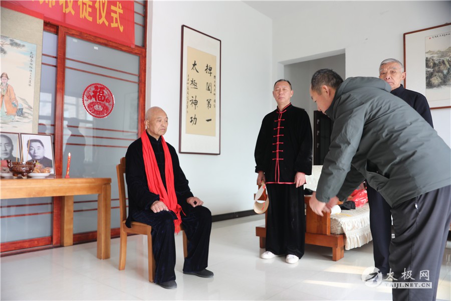 (太极网讯)2023年2月6日,太极拳名家陈天成收徒仪式于温县陈家沟家中举行。太极拳爱好者杜小平经过重重考核终如愿拜师于陈天成大师门下,成为陈家沟陈氏太极拳第十二代传人。 出席本次仪式的有陈家沟陈氏家族理事会陈一华、陈石岩,太极网创始人/温县太极拳传承人联合会主席刘洪奇,太极拳名师陈素英,陈紹光,白宝华等嘉宾应邀出席。 陈石岩主持收徒仪式 仪式遵循陈家沟拜师礼制,古朴庄重。师父陈天成祭拜太极拳祖师上香、敬酒,以告慰祖先香火有序传承有继,感谢先辈创拳传拳之辛劳,祈求祖师佑泽师门。新入门弟子宣读拜师贴,并向师父敬拜师茶、行叩拜礼。 师父回帖并为弟子披挂绶带 弟子杜小平发言 弟子杜小平表示非常荣幸能成为陈天成名师入室弟子,成为陈氏太极拳第十二代传人。今后会谨遵师父教诲,恪守门规祖训,继先贤绝学,精心感悟太极真谛。 刘洪奇致辞 见证人刘洪奇致辞,对陈天成名师的拳艺和武德给予了高度的评价。并向杜小平表示祝贺,希望杜小平继承传统,弘扬国粹。跟师傅学好拳,为传播中华传统文化作出应有贡献。 |