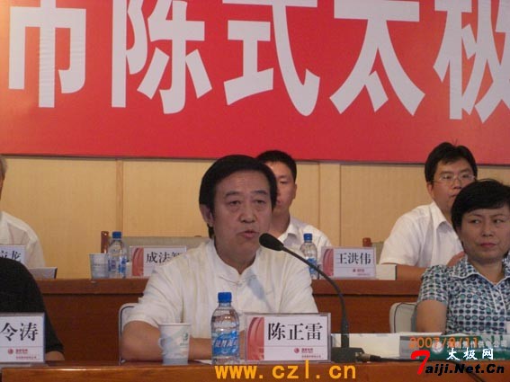 | 焦作陈式太极拳协会暨第一届理事会今天上午在焦作隆重举行,河南省武术协会主席、河南省陈氏太极拳协会主席张振河先生;河南省陈氏太极拳协会常务副主席陈正雷大师;河南省陈氏太极拳协会秘书长佟昌亚先生;陈家沟太极拳馆副馆长兼主教练张东武先生;应邀参加了这一会议。 焦作市是“太极拳”的家乡,焦作陈式太极拳协会的成立得到省市主管部门的高度重视;省武管中心李婕书记在会议上作了重要讲话;陈正雷大师代表河南省陈氏太极拳协会作了深刻讲话,陈正雷大师作为陈氏太极拳嫡宗传人、一位奋斗在武术战线上的老武术家;认为焦作陈式太极拳协会的成立意义深远,呼吁太极拳届的朋友们团结起来,为弘扬传统文化作出自己的贡献;陈正雷大师的讲话的到大家的积极响应。 第一次理事会的一致通过,闫文胜任会长;郑瑞晨任常务副会长;我拳馆张东武教练被推选为副会长!