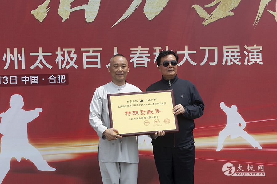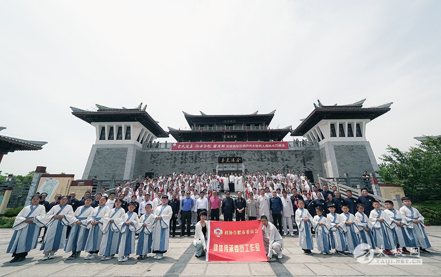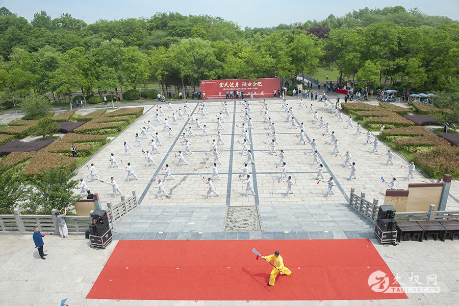 五月,注定是一个不平凡的时节。五月,有体现辛勤与创造的劳动者的节日;五月,也有一个专为一种运动而确定的世界性节日——世界太极拳月,以此呼唤全世界的人们共同修练、传承这一起源古老东方的独特拳种! 5月13日上午,位于合肥三国遗址公园。一群来自安徽省160位的太极拳爱好者们共同奉献了一场精彩的展演活动——“富光杯安徽省级非遗庐州太极百人春秋大刀展演”,以此向“世界太极拳月”献礼,向心中神圣的太极拳致敬! 这场展演活动是由合肥市体育局、文旅局和安徽省武术协会世清太极文化研究会联合主办,由富光世清太极拳馆承办,并由中国武术七段、全国体育先进个人、合肥市政协委员、陈式太极拳非遗传承人、富光世清太极拳馆长倪世清老师亲自领衔表演。 富光世清太极拳馆自2006年成立以来,一直致力于传承推广太极拳,传授弟子遍及全省。世清太极拳馆每年都会举办各类重大活动推广太极拳文化,为弘扬太极拳做出应有的贡献。 据介绍,庐州太极春秋大刀是安徽省级非遗庐州太极的特色项目之一,春秋大刀别名关公刀(三国名将关云长所用"青龙偃月刀"即是春秋大刀),被誉为“百军之帅”,具有刀法灵活、变化多端、气势雄伟、舒展大方的特色。 在慷慨激扬的战鼓声中,在倪世清老师的号令之下,从七岁到七十岁挥舞春秋大刀集体演练太极刀法。整个刀法套路行云流水、刚柔互用、快慢相间、气势磅礴,给观众带来一场壮美的视觉盛宴。 本次展演活动还穿插了多个文艺项目,让整个活动丰富多彩,高潮迭起。 合肥朱子书院的十六位少年集体朗诵了《三国演义》开篇词《临江仙·滚滚长江东逝水》,应景于三国遗址公园,把现场观众带回到一千七百多年前的三国古战场,大有穿越之感。 合肥市非遗梅庵彭韬古琴社的老师现场奉献了《关山月》古琴演奏。琴声韵味醇厚、意境悠远,时而雄劲豪放、时而跌宕缠绵,不仅演绎出当年三国将士征战沙场的悲怆情意,还演绎出刚柔相济太极神韵。