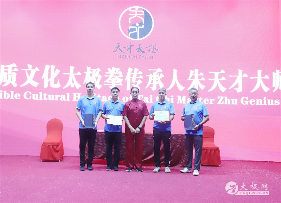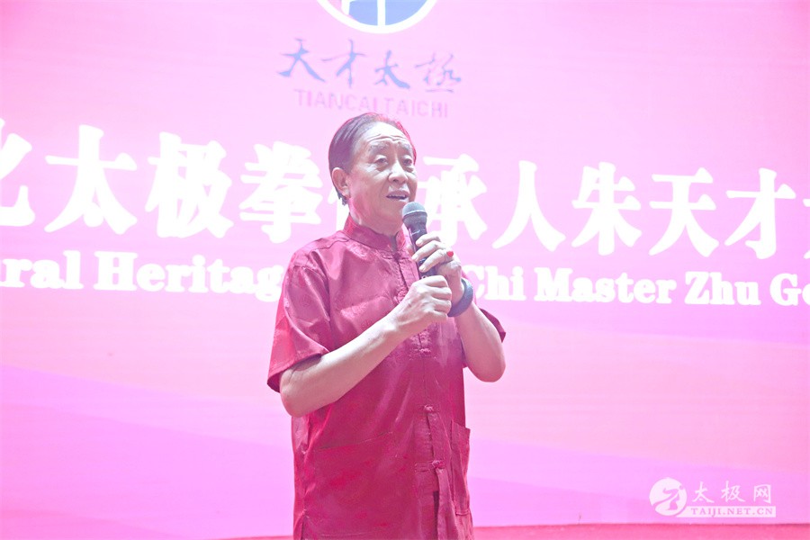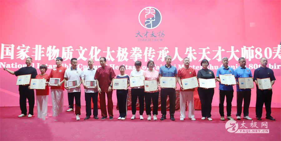 (太极网讯)8月20日,国家级非物质文化遗产陈氏太极拳代表性传承人朱天才大师八十寿诞暨收徒仪式在温县隆重举行,来自世界各地的天才太极体系弟子传人及武术界嘉宾们聚集一堂,共同参与和见证这一重要时刻。 朱天才大师致辞说,感激众多弟子和朋友们在这个特殊日子里对他的祝福和支持。他强调,太极拳是中华民族的瑰宝,期待大家携手为太极走向世界贡献力量。 活动现场举行了入编《中国武术文化遗产保护传承人物》资格的证书颁发仪式。朱保林、朱向前、朱向怡、朱向华四人凭借在陈式太极拳领域的杰出贡献,成功入编该资格。朱天才大师为四子颁发证书,寓意着太极拳薪火传承,代代有序。 中国好功夫百强武馆证书颁发仪式 收徒仪式由陈家沟天才太极院院长朱向华主持,仪式简洁庄重,十三名弟子通过传统仪式拜师。 寿宴在一曲欢快的生日歌中拉开序幕。朱天才大师在家人和众弟子的簇拥下,一起切下了生日蛋糕,分享这个值得纪念的时刻。来自世界各地的弟子和朋友们纷纷送上祝福,为这位陈式太极拳的代表性人物献上最诚挚的祝福。 陈家沟太极拳各体系代表性传承人,在场的所有弟子和天才武院的代表们纷纷上台向大师祝寿,献上诚挚的祝福。朱天才大师的弟子们表示,他们将秉承大师的教诲,致力于陈式太极拳的传承和发展,让这一中华武术的瑰宝在世界范围内发扬光大。 寿宴最后,全体起立大合唱《我和我的祖国》,在场所有人员一起歌唱我们的祖国,祝福我们的祖国繁荣昌盛。 精彩节目展演 责编:邓豪杰 |
