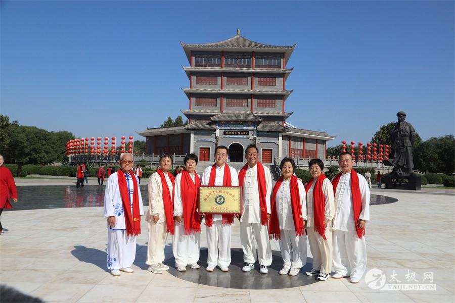 10月15日,正值太极网第九届颁奖盛典期间,保定陈式太极文化研究会会长周新老师率队30余人参加了这场“互联网+太极拳”年度盛会。与会众人怀着对太极拳的虔诚和热爱之心参加了太极网组织的寻根陈家沟活动,与此同时,一场具有特别意义的仪式在太极拳发源地温县陈家沟中国太极拳博物馆前举行,保定陈式太极文化研究会徐水区分会正式授牌成立。