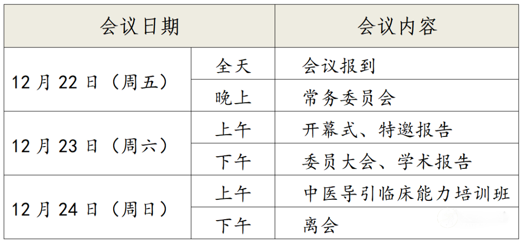 为系统回顾中医导引传承发展经验,全面梳理中医导引的临床问题,深度凝练中医导引的临床内涵,共同研讨中医导引的学术方向,现定于2023年12月22-24日举办“第三届中医导引学术研讨会暨中国医学气功学会2023年中医导引学术年会”,同期还将举办“中医导引临床能力培训班”。现将会议相关情况通知如下。 一、会议主题 发掘导引科学内涵 提升临床服务能力 二、会议内容 1. 中医导引临床应用的历史经验; 2. 中医导引临床优势病种的研究进展; 3. 中国导引服务临床服务方法和路径; 4. 中国导引临床能力的提升策略。 三、参会人员 中医导引知名专家、中医临床或康复领域专家,各级各类医疗机构康复、护理等领域的专家和临床工作者,中医导引相关健康产业从业人员。 四、主要日程 五、组织机构 1. 主办单位:中国医学气功学会 2. 承办单位:中国医学气功学会中医导引专业委员会、北京小汤山医院 3. 协办单位:北京高原适应研究康复中心、广东省中医院循证医学团队、中国医学科学院生物医学工程研究所中医工程研究中心、同方知网数字出版技术股份有限公司、谦益农业(湖北)有限公司 六、会议时间及地点 会议时间:2023年12月22-24日 会议地点:北京小汤山医院 七、会议征文 1. 征文内容:同会议内容。 2. 论文要求:①论文内容真实、可靠,具备科学性、先进性、实用性,未在国内外公开发表的文章优先;②全文3000字左右,文稿附中文摘要、关键词;会议同时接受摘要投稿 500字左右(采用结构式摘要,包括目的、方法、结果、结论、关键词);文章标题四号字黑体,正文采用小四号字宋体1.5倍行距Word文档、A4版面;③文末请注明作者姓名、单位、邮编、电话及邮箱。投稿邮箱:joy20371@126.com 3. 论文投稿截止日期:2023年12月15日 八、会务安排 1. 会议费用:会务费800元,学生500元(凭学生证),由中国医学气功学会开具发票。 2. 餐饮交通:会议统一安排食宿,交通及住宿费自理。 3. 汇款方式 (1)银行汇款 户 名:中国医学气功学会 开户行:中国工商银行北京香河园支行 账 号:02000 191 090 144 09382 (请务必附言:姓名+导引年会+单位名称) (2)扫码支付 扫描以下二维码A完成支付(请务必备注:姓名+导引年会+单位名称),支付成功后,请将汇款信息截图、所需开具发票信息抬头、纳税人识别号、联系人和电话发至邮箱: xzyxh@163.com。 4. 请参会人员扫描二维码B,填写会议回执报名参会。如报名请在12月17日前完成填写,以便会务组提前安排餐饮等会务事宜。 5. 住宿费用标准:A区房间400元/晚,C区房间480元/晚。 九、联系人 1. 学术联系人:岳萍 18622321806(微信同号) 2. 住宿预订:王红霞 010-61789936 15011450518 更多详细信息及征稿要求,请见附件: |