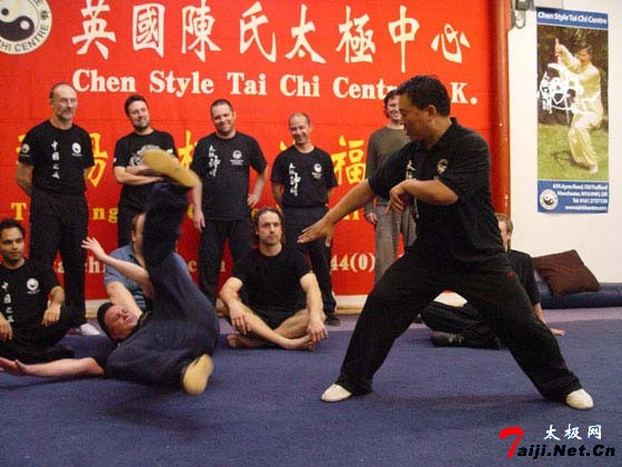 应英国陈氏太极中心岳黎明先生的邀请,拳馆主教练兼副馆长张东武经陈正雷大师批准及拳馆委派,于10月12日赴英国讲学,现正授艺英伦,盛传当地。 张东武教练素有“太极旋风”之美称,自随恩师陈正雷大师以来,全部身心致力于太极拳的推广普及,得大师真传,功夫纯正技术全面,所到之处好评如潮,与太极少帅陈斌、南阳武圣高东祥、华南妙手傅能斌并成“陈门四杰”。近年来张东武教练每年均随陈正雷大师到欧洲等国传拳授艺,英国陈氏太极中心也是常来交流之处;张东武教练无论武德、武技都有家师之风,深受英国广大太极拳爱好的喜爱;此次张东武教练的到来在当地引起轰动,周边地区的爱好者蜂拥而至前来聆听、学习张教练的授课,张东武教练就陈氏太极拳老架一路、新架一路、太极推手做了精彩演绎并倾心相授,精湛的技艺折服了我们的外国拳友,学习之潮蔚然成风,于是太极旋风在英伦这片美丽的土地上悄然刮起!