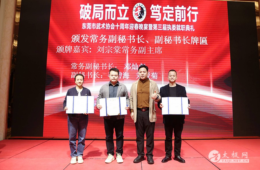 2024年1月15日,东莞市武术协会成立十周年迎春晚宴暨第三届执委就职典礼在康帝酒店成功举行。此次活动吸引了众多嘉宾和武术爱好者的参与,共同见证了这一重要时刻。通过举办迎春晚宴暨第三届执委就职典礼,向过去十年的辛勤付出和成就致敬。 活动在庄严的国歌声中拉开帷幕。出席活动的领队及嘉宾有原东莞市体育局副局长袁子健,中共南城街道非公有制经济和社会组织委员会副书记温秋海,东莞市文化广电旅游体育局群体科科长李敬东,东莞市武术协会创会主席张伟权,东莞市文化馆副馆长何超群,南城街道胜和社区党委副书记苏柏坚,东城体育管理服务中心主任章新宏,东莞市政协委员王庆余,桥头镇文化服务中心副主任莫小琼,佛山武术协会主席梁少宗,广东省武术协会副会长黄标,汕尾武术协会主席黄坤城,惠州武术协会主席黄小洪,香港大中华武术家协会主席黄宝锋,东莞市工商联(总商会)联络部部长李立华,福建商会党支部书记张旭岑,香港著名导演杨健武,原中国拳击国家队、全国青少年拳击锦标赛 51kg 级冠军招甜甜等。 在晚宴上,通过观看一段回顾武术协会十年历程的VCR,与会者共同回顾了协会从创立至今的辉煌成就。随后,创会主席张伟权发表了致辞,对新一届执委表示祝贺,并展望了协会未来的发展方向。 在庄严的印章交接仪式上,张伟权将印章传递给了新任主席梁华国。梁华国首先感谢了各地政府和体育局对协会的大力支持,并对创会主席张伟权十年来对协会的贡献表示了由衷的感谢。他表示将秉承前任主席的优良传统,继续推动协会的发展,并带领全体会员为弘扬中华武术文化贡献力量。 吴杰年作2023年工作总结及2024年展望 东莞市武术协会党支部揭牌仪式 晚会还举行了精彩的武术表演和文艺节目,包括国家级非遗项目莫家拳、双节棍等。表演者们技艺精湛,赢得了现场观众的阵阵掌声。此外,晚会还穿插了激动人心的抽奖环节,为嘉宾们带来了欢笑和惊喜。 在晚会的最后,新任执委们进行了集体亮相,并向所有出席嘉宾表示感谢。整个活动在和谐、欢乐的氛围中落下帷幕。 通过此次盛会,东莞市武术协会不仅回顾了过去十年的辉煌成就,也为未来的发展奠定了坚实基础。在全体执委和会员的共同努力下,协会将继续为传承和弘扬中华武术文化发挥积极作用。 责编:小田 |