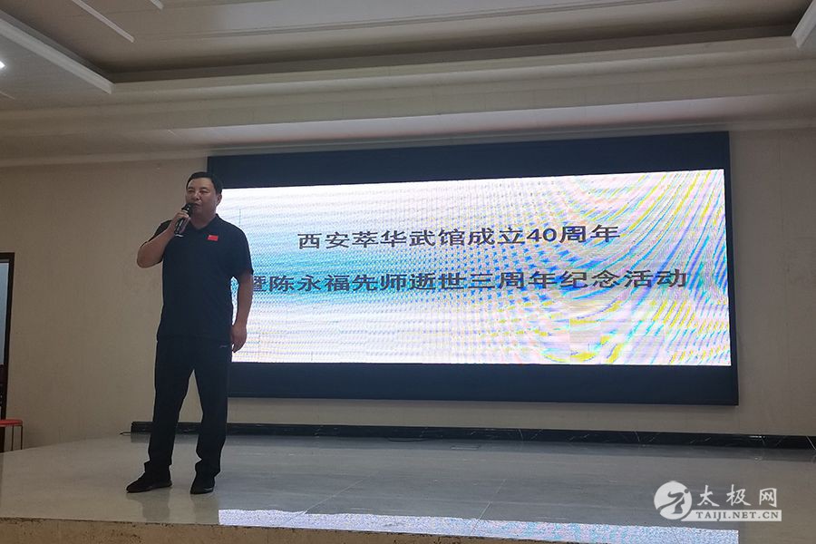 | (太极网讯)2024年8月18日上午,西安萃华武馆成立40周年暨陈永福大师逝世三周年纪念活动,在陈家沟太极拳祖祠成功举办。来自各地的众多嘉宾、亲朋、家属、弟子及太极拳爱好者参与此次活动。 陈立宪先师的子女陈沛林、陈沛菊,以及弟子、学生怀着无比崇敬的心情隆重纪念陈立宪先师诞辰一百周年,共同缅怀先师精神和贡献。 在陈家沟太极拳祖林祭拜了陈立清、陈永福先生,表达了对先辈的敬仰与怀念。 西安萃华武馆的学员和嘉宾在太极拳祖祠进行了陈氏太极拳小架三十六式、十三式、太极剑以及推手汇报表演。 祭拜活动结束后,西安市武术协会副主席、西安陈金鳌太极拳学会会长刘永强在纪念会上致辞,对西安萃华武术馆40年来的发展历程给予了高度评价,并对陈永福先生的贡献表示了深切缅怀。 西安萃华武术馆的总教练樊小勇、副秘书长陈蕊以及馆长樊小丽也分别致辞,他们从不同角度回顾了武馆的过去,展望了未来。 陈蕊深情缅怀父亲陈永福先生,表达了对父亲无尽的思念与敬仰。