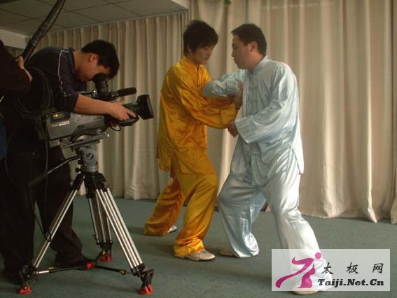 | 3月18日中央电视台10套“探索—发现”栏目组到陈家沟太极拳馆进行实地采访.。 “探索—发现”栏目一直一来都致力于人文方面的发展,此次来到文化底蕴深厚的中原,正是为了更深的了解发源于河南温县陈家沟的陈氏太极拳,让更多的人了解我们中国武术的博大精深,从而参与到保护国家文化遗产的队伍中来。 由于陈正雷大师多年以来对陈氏太极拳的发展的不懈努力,越来越多的人们加入到练拳的队伍当中来,对宣传中国武术做出了巨大贡献。因此该栏目才来到这里。栏目组从多个角度拍摄了陈家沟太极拳馆的概貌,拍摄了众多弟子齐练太极的壮观场面,特写了陈正雷大师讲解示范太极拳在技击实战中的用法,及对众弟子讲述太极的起源和深厚涵义;拍摄了张东武教练深厚的丹田内力(只见一大汉挥拳砸在张东武教练的小腹上,张教练小腹只一收一发,那人便远远弹出,让观者无不啧啧称奇)及太极推手的实战演练;陈斌教练对太极拳中的擒拿走化进行了实战演练,更充分说明了太极不是专给老年人练的,其在防身方面也具有不一般的功效。几位弟子的太极表演更是让拍摄人员及其他拳友们赞叹不已。 栏目组对此次采访的成功深表感谢,他们说该节目将在近期播出,敬请各位拭目以待!