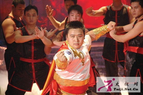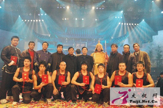 温县入围十六强拳师在武林大会现场合影  总擂主王战军 周擂主陈三虎 周擂主李天金 周擂主樊帅鑫 2008年4月1日晚22点20分,康龙央视武林大会陈式太极拳全国总决赛进入最后的总擂主之争,在亿万观众的瞩目中,囊括此次大会四个周擂主的温县太极拳师王战军、陈三虎、李天金、樊帅鑫开始群龙争霸,最终,陈家沟武术院执行院长、武术总教练王战军一举拿下总擂主之位,不仅在他20多年武术生涯中刻下最为荣耀的一段历史,而且也淋漓尽致地向全世界展示出陈式太极拳独特的技击魅力。 就如央视武林大会主持人宇东在博客中所言:“中央电视台武林大会陈式太极拳总决赛已于近期录制完成了……这应该是武林大会立擂以来,所有拳种门派里面,收视率最高的一个了!!!打得实在是太漂亮了!惊为天人……” 对于陈式太极拳技击的威力,不仅许多像宇东一样的大会参与者感觉为之一震,来自全国各地的太极拳爱好者也感觉份外神奇,这素日公园老年人练的太极拳果真有如此威力。震撼之余,他们开始关注陈家沟,王战军所在的陈家沟武术院网站点击率也直线上升,想到该院学拳的咨询电话更是蜂拥而至,王战军一时成了太极拳乡最引人瞩目的“焦点”。 近日,当笔者采访王战军时,这位捧回总擂主之位的拳师却没有表现出太多的狂喜,谈及此赛的幕后故事,他的脸上总是呈现出如释重负的轻松与惬意。在他看来,能在央视擂台上和众多拳师们一起展示出太极拳的技击魅力,改变大家对陈式太极拳只强身健体、不具备技击攻效的片面看法,就是对自己负重参赛的最大慰藉。 王战军在太极拳界有“常胜将军”之称。在他的太极生涯中,结缘最深的一个词汇便是“蝉联”。从1991年到2001年连续10年蝉联河南省太极拳推手比赛冠军;从1995年到1997年连续三年蝉联全国武术锦标赛太极拳、剑、推手比赛桂冠;在国际太极推手比赛中,他的冠军纪录不止于4届……不仅如此,他在中央电视台表演的“丹田弹物”和“站弓步10人推不动”绝技,创造了两项中国电视吉尼斯记录;2006年6月9日,他在“2006年《武林风》拳王争霸赛”上,一举战胜了日本相扑第一高手曙太郎。 就在他决定“隐退江湖”不再参赛,专心在父亲创办的陈家沟武术院培养太极新人时,2007年秋,由马鞍山市政府、中央电视台体育节目中心等共同主办的武林大会陈式太极拳全国选拔赛开始报名。消息传开,有人鼓励王战军参赛。作为发源地的太极拳师,自己理应为家乡争光,可是,自己年已34岁,几年未参加过比赛……此时,父亲王西安似乎看出了他的心思,语重心长地说:“太极原貌始散手,博大精深奥无穷。这次比赛是我们陈式太极拳散手威力第一次亮相,一定要拼一把,为发源地增光!”在父亲的鼓励下,王战军又说服陈家沟武术院教练李天金、樊帅鑫、宋三星以及自己师兄弟陈三虎,五人以王西安拳法研究会会员的身份报名参赛,最终技压群雄,全部入围十六强。 在马鞍山急训期间,王战军担任小组队长。一心想为拳乡争光的他每天刻苦训练,但因为长期未进行强度体力训练,感觉肌肉异常疼痛,只能靠每天针灸缓解疼痛。一天,训练营里一位外地选手找到王战军,想领教一下太极拳发源地的拳法。因为胳膊疼痛,王战军提出自己抱臂较量。两人刚试手,王战军便感觉对力量强大,将自己推至一步开外,就在这时,他腰一松,用挒劲便把对方摔了一跤。连续几次,对方都趔趄倒地。可几天后,对方似乎仍不解其中滋味,提出再试一试太极拳的擒拿技法。而这一次,王战军只用左侧肩靠,就让对方退出三米开外,直撞墙上,脊梁呈现一片黑紫色,对方这才抱拳连连称:服了!服了! 在央视武林总决赛中,王战军首先与曾在《武林风》打擂的知名拳师朱效振打头场比赛。这次,王战军仍只用了太极拳的擒拿加挒劲,便轻松将朱效振屡次打下擂台。为了迎合导演“动作要漂亮”的安排,王战军便临时加了个震脚的动作,这一震不要紧,竟把擂台震了个窟窿,让负责修理擂台的师傅大惊:“这擂台上全国各地多少高手较量,还从来没有出现这种情况,陈家沟的拳师太厉害了!” 后来,王战军又连胜山东拳师闫西牛,并将复活赛中前来挑战的湖北拳师刘跃辉轻松打下擂台。整个赛事中,为了保护运动员,王战军几乎没打过瘾就被裁判判为优势获胜,最终与陈三虎、李天金、樊帅鑫分获周擂主。 陈家沟拳师竟然囊括四个周擂主,自然轰动拳界。而四个周擂主群雄较量,到底谁能拿下总擂主,则成为此次武林大会最大的看点,尤其当陈三虎战胜李天金与樊帅鑫,将与王战军争冠时,这最后的擂主之争更是万众瞩目。 为了怕两个师兄弟互相谦让,栏目组还暗地里给两人做思想工作,希望他们发挥出真正实力,也在亿万观众面前亮出太极拳散手最本真的面目。等两个平日里情同手足的师兄弟真正站在擂台上时,前几局与其他选手轻松较量的陈三虎显然憋足了劲,而王战军面对强手更是步步谨慎。但在前一场比赛中手指受伤的陈三虎最终逊色师兄一筹,让王战军夺走总擂主。至此,靠着不屈不挠的拼劲,靠着拳师肩负的责任,王战军和陈三虎、李天金、樊帅鑫终于不负重望,拿下四个周擂主、一个总擂主的最好成绩。 回首武林大会,王战军欣慰之余也陡添责任。太极拳最初尤其注重太极散手,多用它技击防身,进行实战,从古至今,名家代出,但由于当今人们更注重太极拳的健身功