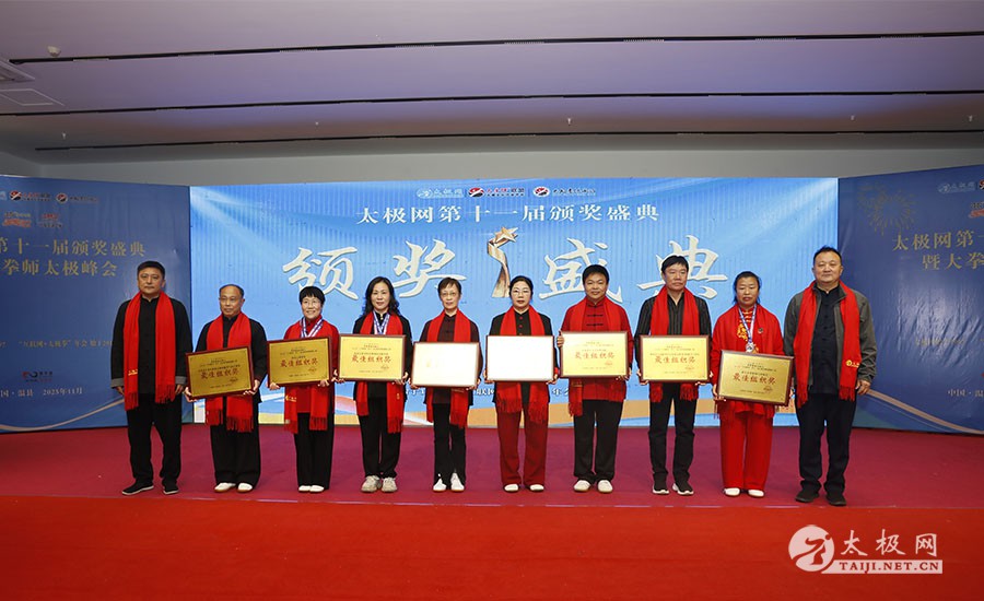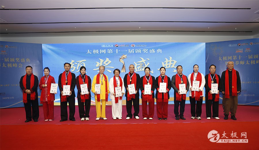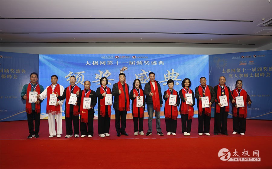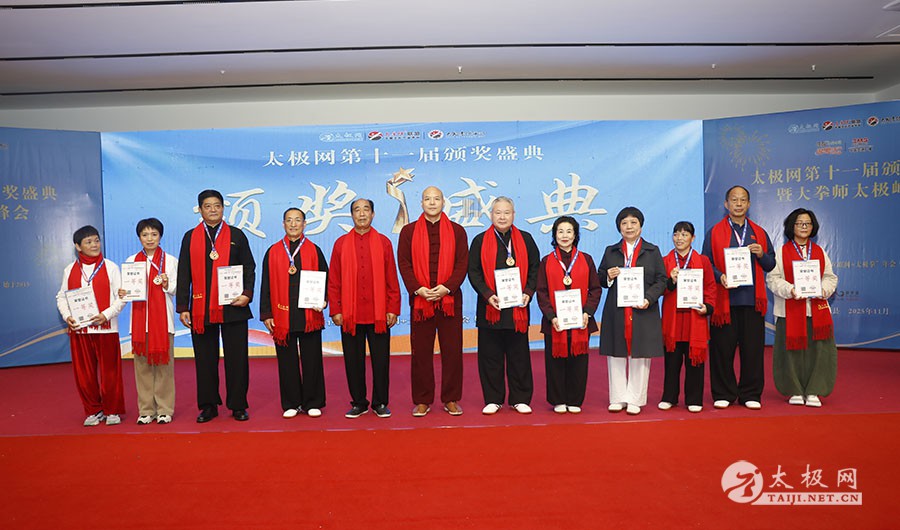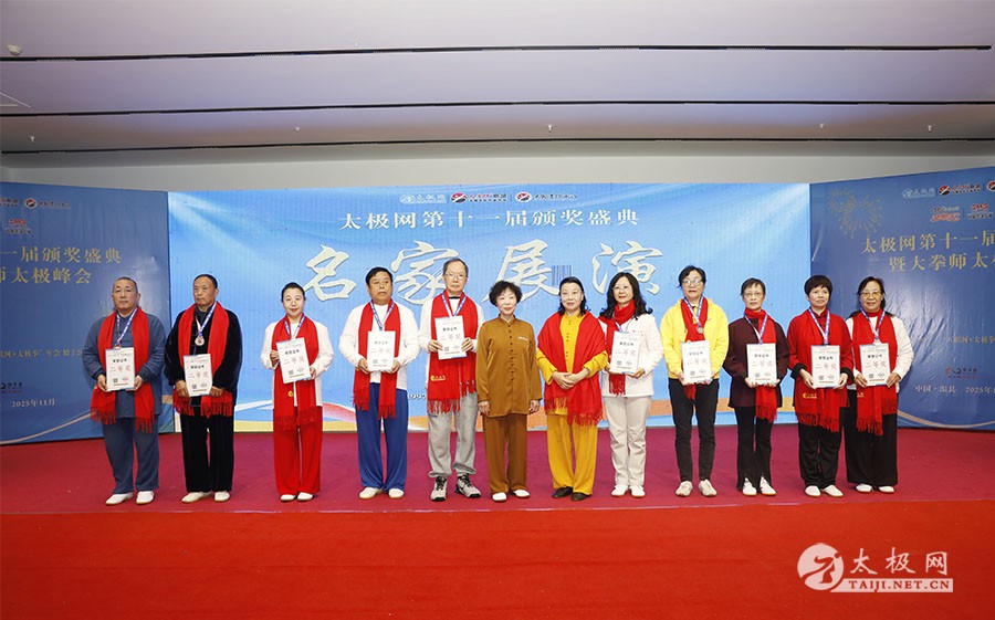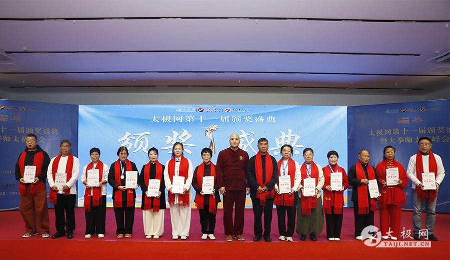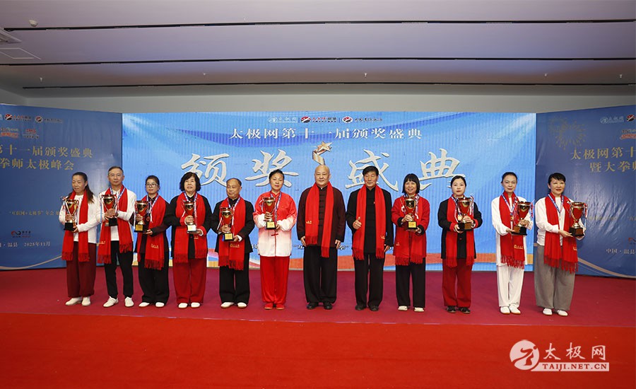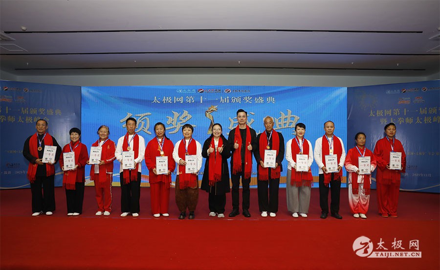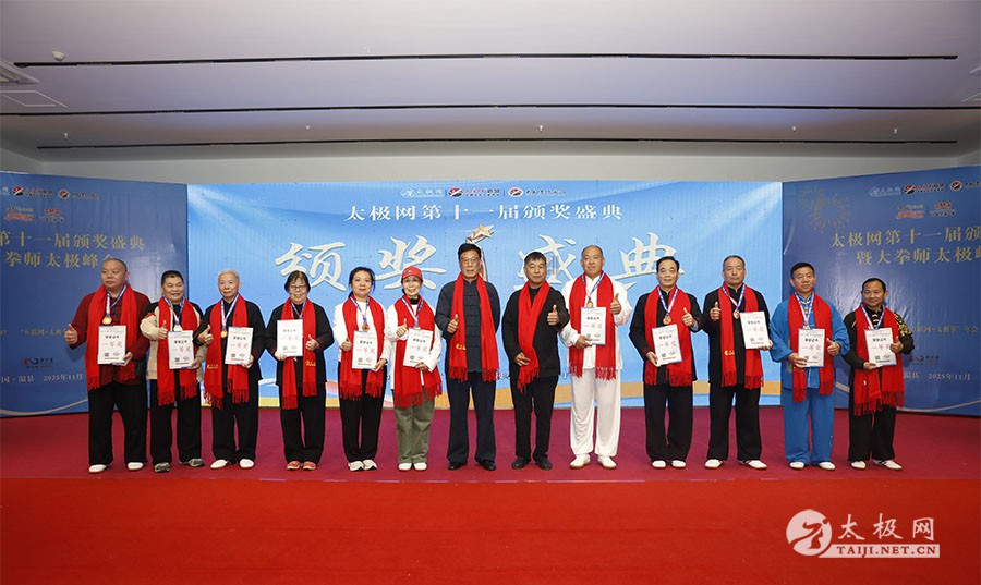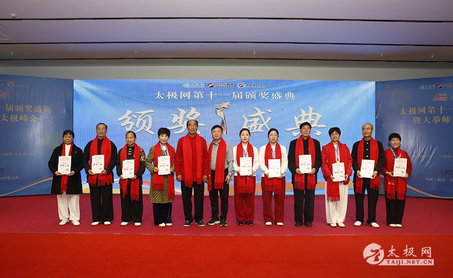 薪火相传十一载,太极盛会向新行。11月8日上午,2025年太极网第十一届颁奖盛典暨大拳师太极峰会在太极圣地河南温县盛大启幕。活动主会场设在温县海旺弘亚酒店三楼会议室,现场群英荟萃,来自全国各地及海外的四百余名各流派拳师拳友欢聚一堂,共同见证这场“互联网 + 太极拳”年度盛会的高光时刻。 作为太极网首创的核心品牌赛事活动,“寻找最美太极人”已迈入其辉煌的第十一个年头。2025年“大拳师杯”第十一届太极拳网络视频大赛吸引了世界各地的4000余名选手线上参赛。每年一度的颁奖盛典,是这一赛事线下颁奖表彰活动,同时汇聚部分参赛获奖选手、各流派太极拳名师名家及优秀传承人、众多馆校协会负责人及武术专家学者等,是广大太极人交流技艺、增进友谊的年度盛会。 中国非遗保护协会太极拳专委会副主任崔玉山出席活动并讲话。太极网创始人、大赛组委会主任刘洪奇致开幕词。焦作市文化馆党支部书记娄莎莎,太极网总编、大赛组委会执行主任李超,温县太极拳武术文化发展中心办公室主任耿谋涛,本次活动赞助方、温暖同行(北京)科技有限公司董事长王文博,开封市武术协会主席吕玉中,太极网战略合作伙伴、豫记太极直播平台创始人王明,河南百养堂生物科技有限公司董事长李红强等嘉宾出席颁奖仪式。 赵幼斌、张东武、陈向武、宋斌、赵现平、陈西立、解礼德、王仲文、苏河、王运宜、陈庆峰、张明、徐勤兰、陈彦胜、梁翠平、王林、柯鸿信、兴隆、王国营、曹树春、常子轩、周新、褚亚龙、涂跃芳、葛红、唐艳华、马国超、苗运浩、曹玉兰、李晓峰等各流派名师名家及优秀传承人受邀从外地赶来共襄盛会。 陈照森、陈有则、陈桂珍、王战军、张福旺、陈冲、陈大虎、陈有刚、陈有华、郑冬霞、陈朝霞、郑彩霞、陈三虎、陈冠军、韩建民、张世庆、陈天森、陈小水、张波、朱亚昆、郑佳琦、陈娜、党绍静、陈小芹、邓梦晓等在温名师名家及优秀传承人到场助阵,向获奖选手颁奖、进行名家表演等。 中国非遗保护协会太极拳专委会副主任崔玉山代表专委会向获奖的 “最美太极人” 送上热烈祝贺,同时向深耕太极文化传播近 30 载的太极网全体同仁表达衷心感谢。对于太极网在“非遗 + 互联网” 融合发展的实践,崔玉山给予高度肯定。他指出,连续十一届太极拳网络视频大赛的坚持与创新,将 “互联网 + 太极拳” 从概念转化为 “线上展风采、线下促交流” 的生动实践,为太极拳非遗传承注入强劲动力。 崔玉山介绍,太极拳专委会成立以来,围绕太极拳年轻化、时尚化、数字化、国际化方向,聚焦 “生命的能量 人类的遗产” 核心主题,全力推动太极拳的保护、传承与弘扬。专委会愿与各地传承人、馆校协会等加强合作,共同助力太极拳传承传播再上新台阶。 太极网创始人、大赛组委会主任刘洪奇向与会来宾及拳友致以诚挚欢迎,众人因太极相聚共证荣耀。他回顾第十届“十拳十美”盛典是太极传播里程碑,强调第十一届是新十年起点,解读“十一”“圆满后重启”的文化内涵与太极哲理契合,并提出本届倡导“松沉”与“转折”的精神与状态。 现场,刘洪奇正式宣告即将推出基于陈家沟传统双人对练技法“搿手”创立的全新赛事——太极拳搿手道联赛。赛事将以俱乐部联盟形式,依托互联网平台,邀请各地太极拳组织参与,携手书写太极拳传承新篇章。他呼吁大家共同叫响大赛口号“会太极,来搿手!” 崔玉山、刘洪奇颁发个人项目一等奖 娄莎莎、李超颁发个人项目一等奖 王文博、耿谋韬颁发个人项目一等奖 王明、吕玉中颁发个人项目一等奖 赵幼斌、张东武颁发个人项目一等奖 陈照森、王战军颁发个人项目一等奖 陈有则、张福旺颁发个人项目一等奖 陈向武、宋斌颁发个人项目一等奖 陈桂珍、梁翠平颁发个人项目二等奖 张明、王国营颁发个人项目二等奖 郑彩霞、唐艳华颁发个人项目二等奖 李超、陈小水颁发个人项目三等奖 赵现平、陈西立颁发集体项目一等奖 刘永强、解礼德颁发集体项目一等奖 苏河、陈彦胜颁发集体项目二等奖 陈三虎、王运宜颁发集体项目二等奖 常子轩、陈庆峰颁发集体项目三等奖 获奖选手代表朱誉发言 获奖选手代表王素方发言 颁奖环节氛围热烈而庄重,本届大赛的部分获奖选手与团队代表依次登台领奖。颁奖嘉宾为获奖者颁发奖牌、奖杯及获奖证书,对他们的精湛技艺给予充分肯定。领奖台上,获奖者们面带荣光、精神昂扬,与颁奖嘉宾亲切握手、合影留念,定格下这一属于太极人的荣耀时刻。 崔玉山、刘洪奇向2025年度“最美太极人”颁发荣誉奖项 李超、陈向武向2025年度“最美太极人”颁发荣誉奖项 张东武、李超向2025年度“最美太极人”颁发荣誉奖项 刘洪奇、刘洪强向2025年度“最美太极团队”颁发荣誉奖项 最美太极人代表王宏辉发言 最美太极人代表张成友发言 最美太极团队代表曹玉兰发言 随着大赛荣誉桂冠大奖 ——2025 年度“最美太极人”“最美太极团队” 命名表彰仪式的开启,现场氛围被推向高潮。获奖个人与团队代表依次登台,接受大赛“荣誉桂冠”的加冕。他们的故事与风采不仅彰显了太极人的初心与担当,更激励着现场每一位太极爱好者砥砺前行。 刘洪奇、李超向大拳师冠军战队、最佳人气奖、最佳人气团队颁发奖牌 崔玉山、