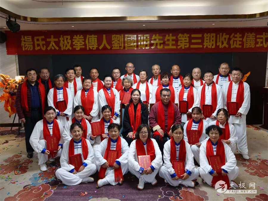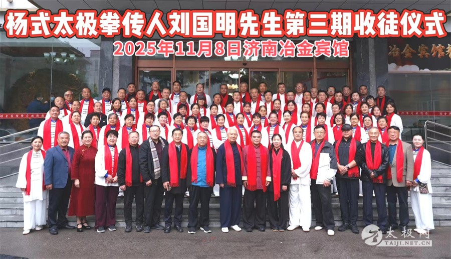 11月8日,杨氏太极拳第七代传人刘国明先生第三期收徒仪式在济南冶金宾馆隆重举行。刘国明先生的入室弟子、记名弟子及武术同仁百余人齐聚一堂,共同见证27位新弟子正式拜师、传承太极薪火的重要时刻。 济南市武术运动协会副主席张立斌代表协会到会祝贺,对刘国明先生为武术传承所做的贡献给予高度肯定。九十高龄的太极拳达人姜承德、山东省老年体协太极拳委员会副主任焦历柏、山东省直机关太极拳工委秘书长江霖、武术世家李中锦、泉城老年记者团团长张建军,以及海南俪宁投资有限公司张金树、孙艳等各界代表莅临现场,共贺收徒之喜。 仪式现场,27位入室弟子依次上前,向师父刘国明先生行拜师礼,表达传承太极技艺与精神的决心。这 27 位入室弟子分别是:孙兴峰、焦春道、谭建华、张广成、陈旭辉、王冠群、王宝章、王洁玉、葛林、王洛、王建波、孙卿言、秦红、孙慧、李琦、闫艳、高红、颜鲁鹤、徐永芹、张希华、黄银美、赵庆莲、卜晓晓、陈连芹、侯思华、刘秀兰、荣小伟。刘国明先生为新弟子颁发拜师证书,叮嘱众人要潜心研习、尊师重道,将杨氏太极拳的技艺与精神发扬光大。 刘国明,号明通,作为杨氏太极拳第七代传人,自幼便与书武结缘。他后拜郝明之先生为师,潜心研习杨式太极拳、刀、剑及太极推手等传统功夫,技艺日渐精湛。2014年6月17日,他成功考入中国武术协会段位制专家人才库,现已是中国武术七段,同时担任山东老年体协太极拳委员会副主任,亦是山东刘国明太极拳社李雅轩派系第四代传承人。2021年,他荣获中国传统武术贡献人物金鼎奖,这份荣耀是对他多年武术传承工作的高度认可。 多年来,刘国明先生积极响应和践行全民健身国家战略,全力支持并参与省市武协开展的群众性体育运动,致力于民族武术遗产的传承与弘扬。他的教学足迹遍布各市老年大学、机关企事业单位、社团及院校,采用线上线下相结合的方式常年传授太极拳。截至目前,参与培训学习的学员已超五万人,其中入室弟子达115人。他的优秀学员和弟子在国内外各类武术赛事中屡获佳绩,许多人已成为社区基层体育活动骨干,为全民健身运动的蓬勃发展注入了强劲动力。 除了在武术领域的深厚造诣,刘国明先生在书法艺术上也深耕不辍,收获颇丰。他八岁起便开始习书,六十余年来笔耕不辍,潜心钻研,书法技艺日臻成熟,成就斐然。如今,他的书法学生已达千余人,桃李满天下。2021年中央电视总台全国书法名家笔会期间,刘国明先生现场创作二十余幅书法作品,笔墨间尽显功力与韵味,赢得了在场各界人士的广泛赞誉与推崇。 武术与书法,一刚一柔,一武一文,在刘国明先生身上得到了完美融合。此次收徒仪式,既是传统武术传承的重要见证,也将激励更多人爱上中华优秀传统文化,让太极精神与翰墨书香代代相传。 责编:小七 |