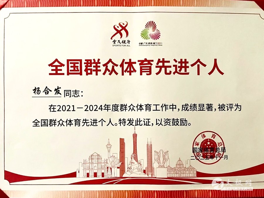 近日,国家体育总局“2021—2024年度全国群众体育先进”评选结果揭晓,河北省武术协会副主席、石家庄市武术协会主席、河北省虹发太极拳研究院院长杨合发先生荣获“全国群众体育先进个人”称号。这一国家级荣誉,是对其四十年来致力于太极拳传承推广、服务全民健身事业的崇高肯定,也为河北省群众体育事业再添一项国家级殊荣。 作为河北武术界的领军人物,杨合发先生四十年如一日,深耕太极沃土。他不仅是陈氏太极拳的杰出传承者,更是全民健身的积极推动者。多年来,他通过系统教学、公益讲座、社区推广等多种形式,以身作则,带动了数以千万计的市民投身于科学健身的热潮中,为“健康河北”建设写下了生动的注脚。 此次获奖,不仅是对杨合发先生个人卓越贡献的嘉奖,更是对河北省群众体育工作成果的认可。他以拳载道,将太极拳这一中华国粹从专业殿堂带入寻常百姓家,极大地提升了太极拳运动的普及度和影响力。 面对荣誉,杨合发院长谦逊地表示:“这份荣誉属于所有支持和热爱太极拳的人们。我将坚守传承与推广太极文化的初心,再接再厉,为助力体育强国建设、服务‘健康河北’贡献新的、更大的力量。” 责编:小田 |