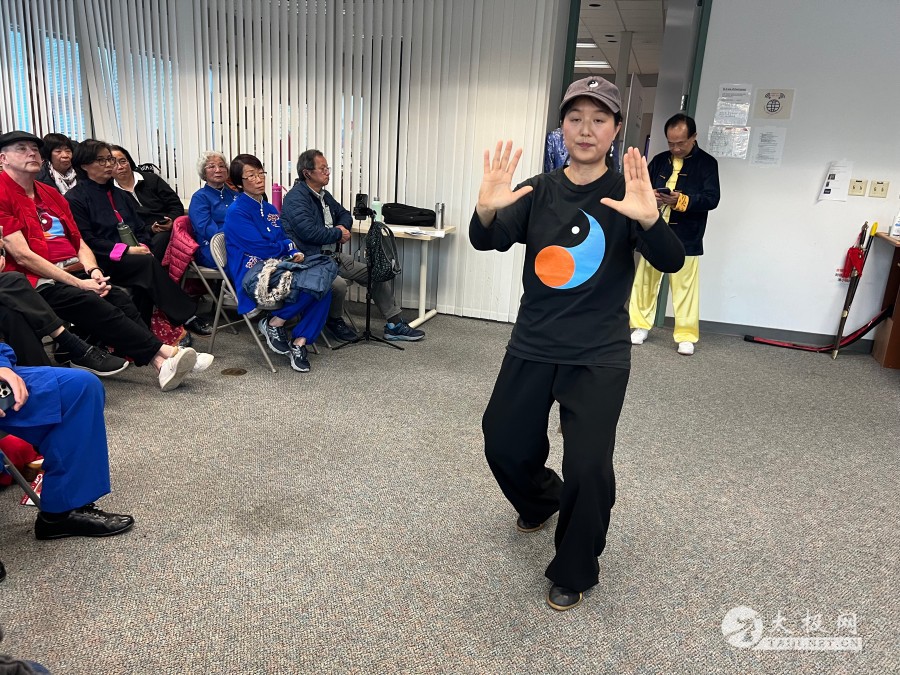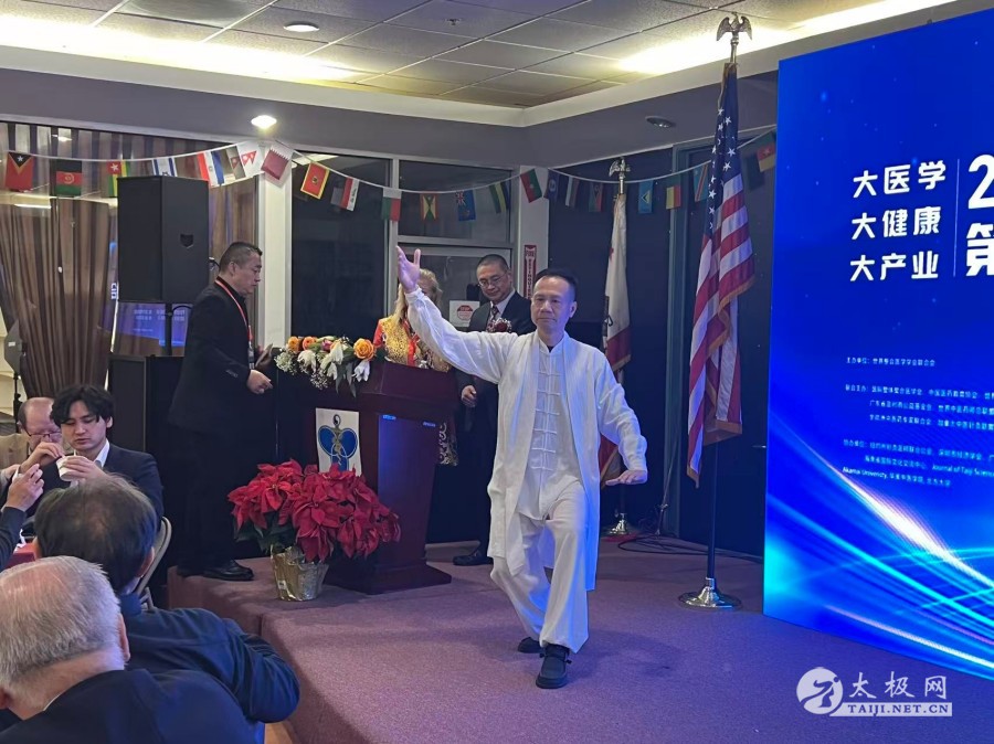 世界太极拳冠军、“太极王子”陈思坦老师教学并带领学员练习32式太极剑 (特邀记者钱承飞)12月5至7日,世界太极拳冠军陈思坦、太极科学联合会主席李书东、开放太极基金会创始人吴阿敏、美国少林文化中心执行主任延然等美国武术界知名人士在地处硅谷国际医药大学内举行的第九届世界整合医学大会上大展身手,开班讲学与演练,受到来自世界近80个国家和机构的顶尖医学专家学者与旧金山湾区武术爱好者与太极养生者欢迎,获益匪浅。大会开幕式上,在美妙的旋律之中,世界太极拳冠军陈思坦、太极科学联合会主席李书东等嘉宾带领百人演练24式太极拳,行云流水的动作,展示了美国社区太极文化的魅力。