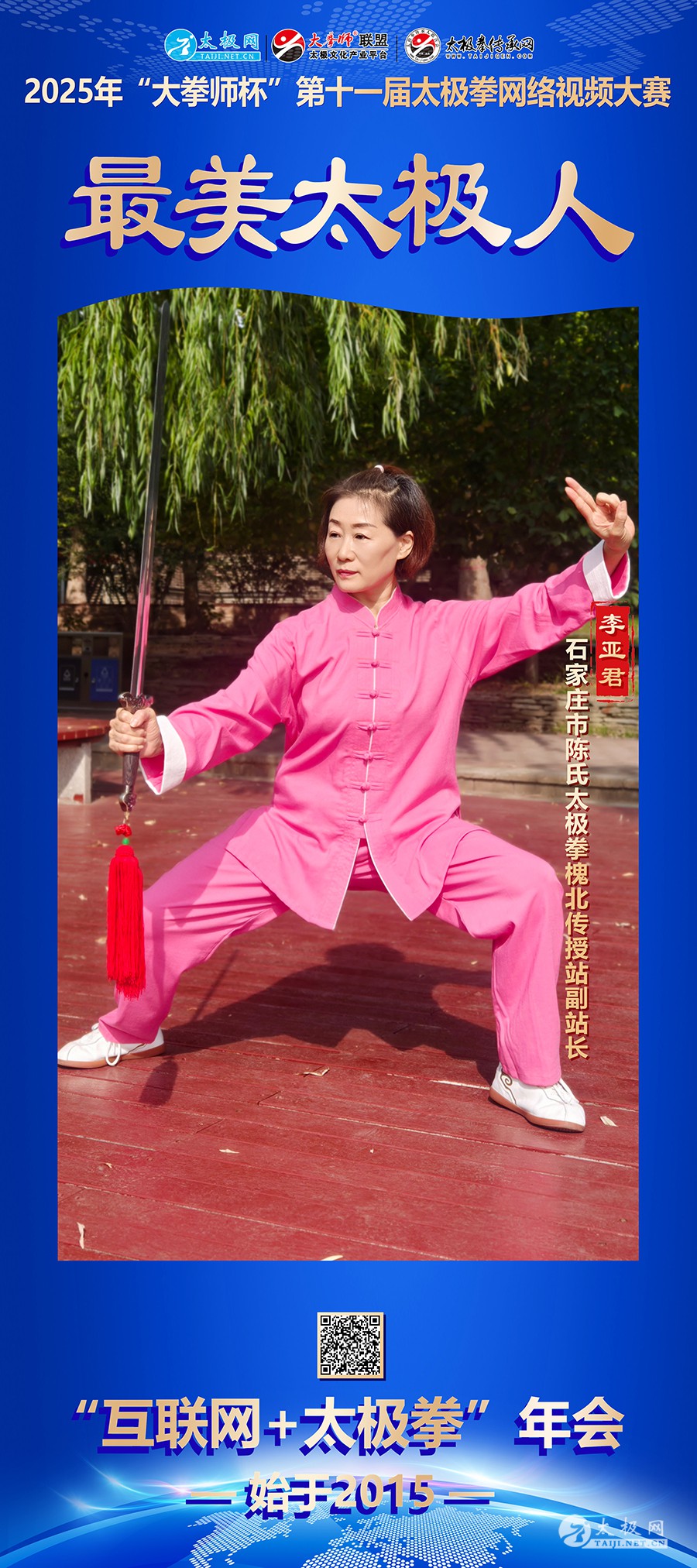 在石家庄槐北公园的一片绿荫下,清晨的阳光透过枝叶洒在一群练拳人身上。站在队伍前方领拳的,是一位身形挺拔、动作流畅的女士——李亚君。谁能想到,这位太极拳教练在数年前还是一位即将退休、感到生活“无聊”的前体操运动员。 缘起:退休前夕的“第二次起跳” 2014年,李亚君即将告别工作多年的岗位,步入退休生活。对许多人而言,这是放松享福的开始,但对她来说,工作压力的减轻反而带来了新的困扰。 “工作压力已经没有那么大了,但太轻松的日子有时会感到无聊。”李亚君回忆道。就在这个人生转折点上,女儿的推荐和鼓励,让她迈出了改变的一步——走进了完全陌生的太极拳领域。 有着国家一级体操运动员背景的李亚君,身体条件和对动作的模仿能力都相当出色。然而,初学太极的经历却让她感到挫败。 “虽然学起太极拳模仿动作不那么费劲,但打出来的样子就是在打太极操,感到十分困惑。”她坦言,这种“形似神不似”的状态持续了一段时间,直到2014年7月1日那天,一次偶然的公园漫步,让她遇见了真正的太极拳。 转折:槐北公园的邂逅 那天,当李亚君再次走近槐北公园时,被一位老师打的太极拳深深吸引。那是太极拳大师马虹先生的亲传弟子吕林红老师正在槐北公园陈式太极拳传授站授课。 “我抱着试试看的心态加入了太极拳初级班的学习,从此开始了我的太极拳之路。”李亚君笑着说。 跟随吕林红老师学习陈式太极拳83式的过程,是李亚君对太极拳认知的彻底重塑。“吕林红老师耐心细致地讲解每一招每一式、每一个劲道,都讲得明明白白。”从不了解太极拳到慢慢喜欢上太极拳,李亚君在吕老师的引领下,逐渐窥见了太极拳的堂奥。 精进:从学员到教练的蜕变 2016年,李亚君又参加了陈式太极拳二路拳71式的学习班。凭借扎实的基础和刻苦的训练,她很快熟悉掌握了套路。2017年,她通过培训考核,以优异成绩获得陈式太极拳一路83式、二路71式的教练员资格。同年,她又跟随吕林红老师学习了陈式太极剑63式。 “2017年因训练刻苦认真,掌握技能突出,我被吕林红老师提拔为助教老师,并协助传授站的教学工作。”李亚君的语气中透着自豪。同年,她在武术段位制考评中成绩优异,晋升武术三段,并被石家庄市武术协会陈式太极拳专委会评为先进个人。 师承:一份使命的传承 对李亚君而言,太极路上最珍贵的经历莫过于2016年7月16日那一天——她正式拜吕林红为师,成为了陈氏太极拳的第十三代传承人。 “感恩遇见了太极拳,感恩遇见了德艺双修的好老师。”李亚君深情地说,“她经常和我交流,既是好朋友又是更亲的家人。” 拜师之后,李亚君突然意识到自己身上多了一份使命和责任。“学好一套拳架容易,理解拳理打好一套拳却很难。”在师父的鼓励与耐心教诲下,她对太极拳的认知发生了彻底的改变。 “内劲与外形、意、气、力之结合,每一招每一式的进步都离不开师父对我的指导和耐心纠正。”李亚君感慨道。 领悟:太极拳的深远意义 “理明则功进,功进则理更明。”通过长期的坚持练习,李亚君真正体会到了太极拳的深远意义。 “太极拳的健身性、技击性和艺术性,这三者完美结合,才是完整的太极拳。”她解释说,健身性让练习者身体健康、精神愉悦;技击性是太极拳的本质特征,蕴含着丰富的攻防智慧;艺术性则体现在动作的韵律美和内外协调上。 如今,李亚君不仅自己每日练拳不辍,还致力于太极拳的教学与传播。在她看来,太极拳不仅是一项运动,更是一种生活哲学,一种身心合一的修行方式。 “从体操到太极,看似都是从‘动’出发,但内涵却大不相同。”李亚君总结道,“体操更注重外在的表现力和难度,而太极则更注重内在的和谐与平衡。这种转变,也正契合了我从职业生涯到退休生活的过渡。” 在槐北公园的晨光中,李亚君继续着她的太极教学。对她而言,太极拳不仅是退休生活的精彩延续,更是一条通往身心和谐、传承文化的终身道路。从国家体操健将到太极传承人,李亚君用八年的时间,完成了一次华丽的人生转型,也为更多人树立了退休生活的精彩范本。 太极档案: 李亚君,陈氏太极拳第十三代传人,师承吕林红。中国武术六段,国家一级运动员,石家庄市武协陈氏太极拳专业委员会会员。现任石家庄市武协陈氏太极拳专业委员会槐北传授站副站长兼教练。 荣誉经历: 2017年石家庄“马虹杯”传统陈氏太极拳联谊赛荣获个人项目传统太极拳一等奖、传统太极剑一等奖,集体项目太极拳套路一等奖; 2017 年首届中国·陈家沟太极拳家乡赛荣获传统陈式太极拳二等奖、陈式太极剑二等奖; 2021年“马虹杯”传统陈氏太极拳网络联谊赛荣获传统陈式太极拳一等奖; 2024年石家庄武术节暨石家庄市第三十一届武术套路荣获个人项目陈式太极拳一等奖,陈式太极剑一等奖,集体项目陈式太极器械二等奖。 2025年全国传统武术公开赛(山东赛区)暨山东省第十五届全民健身运动会传统武术比赛荣获传统陈式太极拳二等奖、传统陈式太极剑二等奖; 2025年“大拳师杯”第十一届太极拳网络视频大赛荣获传统陈式太极拳一等奖、陈式太极剑二等奖,并荣膺“最美太极人”称号。 责编:小田 |