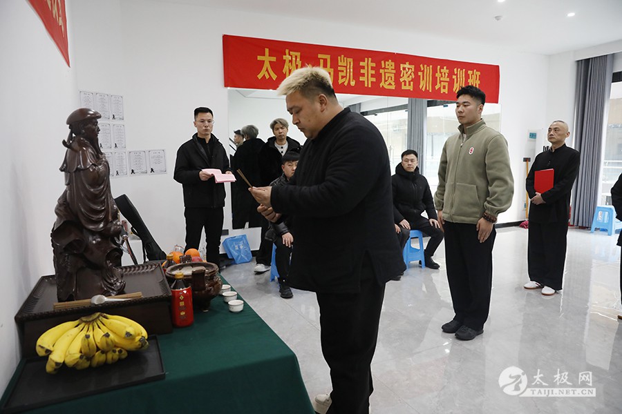 (太极网讯)2026年1月16日下午,陈氏太极拳第十三代传人马少凯收徒仪式在太极拳发源地河南温县举行。罗杰、张文倩、万丹丹等三位新弟子通过传统仪式正式拜师,成为陈氏太极拳传承脉络中的新生力量。仪式由太极网总编李超主持。 作为太极拳名家陈二虎的弟子,马少凯自幼研习太极拳技艺,多年来勤奋刻苦,深耕拳理拳法,不仅练就扎实功底,更始终坚守传承初心。现今,他通过网络进行线上直播教学,结合线下培训,走出了新生代太极拳传承人的传播推广之路。 此次收徒谨遵传统礼仪,处处彰显着对太极拳这一非遗文化传承的郑重之心,太极拳名家陈三虎及韩飞、陈大飞等嘉宾,马少凯同门师兄弟陈二伟、朱亚伦、马帅等受邀出席,共同见证这一传承时刻。 仪式伊始,师叔陈三虎带领马少凯向太极拳始祖及历代先师上香、祭酒、叩拜,以传统礼节告示此次收徒之举,表达接续传承太极文化的决心。 弟子们宣读拜师帖,字字恳切,满含对传承太极技艺的赤诚;随后依次上前,向马少凯老师递拜师帖,并恭敬奉上拜师茶。 马少凯老师对各位嘉宾及师兄弟见证仪式表示诚挚感谢。他坦言,收徒既是荣誉,更意味着责任重大。对新弟子,他提出两点殷切希望:一是,习练太极拳要有敬畏之心;二是,愿与各位弟子一同研习太极、共同进步。 新弟子代表罗杰在发言中动情表示:“能拜入马少凯老师门下,是我们莫大的荣幸。师父的言传身教,让我们深刻体会到太极文化的魅力与传承的意义。未来我们定当日日勤勉、刻苦习练,恪守门规、谨遵师训。” 真挚的话语中,尽显新一代传承人的决心与担当。 仪式最后,马少凯老师与三位新弟子及到场嘉宾共同合影留念,镜头定格下这一极具意义的传承瞬间。此次收徒仪式,不仅是一场传统礼仪的践行,更是陈氏太极拳非遗传承的生动注脚 —— 它让“师徒相授”的传统得以延续,也为太极文化注入了新的活力。 太极拳档案:马少凯,陈式太极拳第十三代传人,河南省一级社会指导员,中国武术六段,国家二级武术裁判,全国太极拳推手蝉联冠军,已帮助数以万计零基础学员在线轻松学太极。 本站责编:宋丽丹 |
