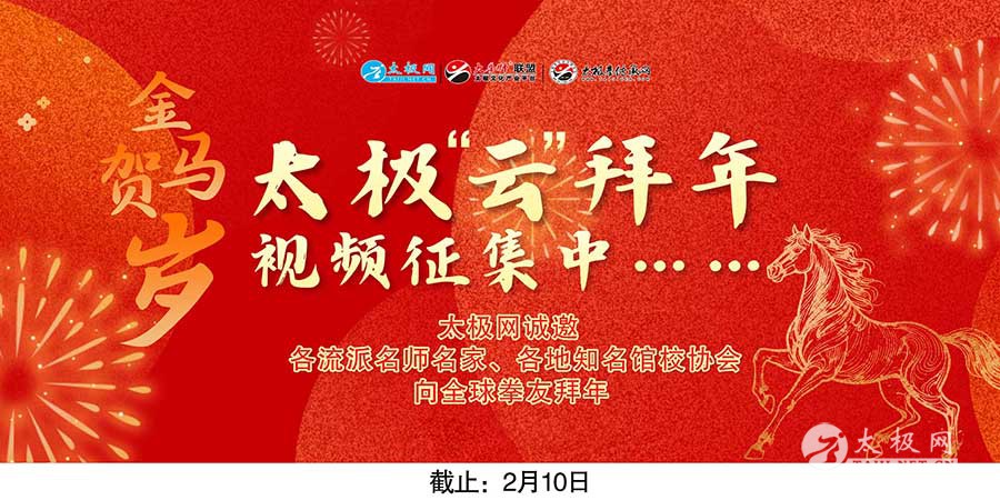 春临大地,福启新程。值此2026年丙午马年新春佳节来临之际,为定格这份荣耀与喜悦,传承中华优秀传统文化,彰显太极拳的深厚底蕴与时代魅力,搭建太极人交流互动的平台,传递太极人对新春的美好期许与对太极拳的赤诚热爱。 太极网诚邀全球拳友共同参与“太极人的新春拜年视频征集”活动。现诚邀广大太极同仁携手参与,以拳为礼,以声为贺,共贺新春,共话传承,续写太极拳文化新篇。 一、活动主题 太极贺新春,拳心传祝福 二、征集时间 即日起至2026年2月10日 三、视频要求 紧扣新春主题,传递积极向上、团圆祥和的氛围,融入太极拳文化元素,展现太极人的精神风貌。内容样本(不限于):我是XXX,我代表XX(拳馆/组织)祝广大太极拳爱好者新年快乐,万事如意! 单个视频时长控制在15-30秒,节奏紧凑,信息完整。 四、作品展示与权益 太极网将对各流派太极拳名师名家、各地知名馆校协会等拜年视频进行专属剪辑包装并全网发布,官方微信公众号、视频号、抖音等平台进行系列展播。 新闻报道:针对组织质量较高的太极拳年会活动,太极网全媒体平台进行公益宣传推广。 五、相关说明 1. 参与者提交作品即视为同意主办方拥有作品的使用权(包括但不限于展播、宣传、汇编等)。 2. 主办方对本次活动拥有最终解释权,若遇作品内容争议,将有权取消其展示资格,参与者需自行承担相应责任。 六、提交方式(微信同号) 田 丽:17703916070 杨 超:15239150487 邓豪杰:13007659881 郭 蕾:13839131859 邮箱:811178358@qq.com 太极网全媒体运营中心 2025年1月 |