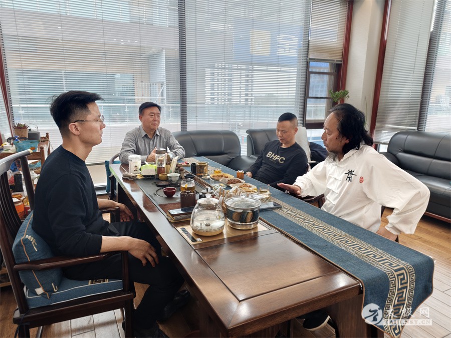 (太极网讯)2026年3月29日,青城武术代表性传承人、四川省武术文化研究会会长刘绥滨一行到访太极网总部交流,与太极网创始人刘洪奇、总编李超进行座谈,原国家队武英级运动员、世界太极与散打双料冠军、陈氏太极拳第十一代传人苏德发同行参与,双方围绕“互联网+太极拳”、文旅融合、研学培训、搿手项目推广等话题展开深入交流探讨,并达成诸多共识与合作落地意向。